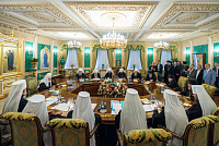 Открывая заседание, Предстоятель Русской Православной Церкви обратился к членам Священного Синода со вступительным словом, в котором представил повестку дня, после чего Синод приступил к работе.