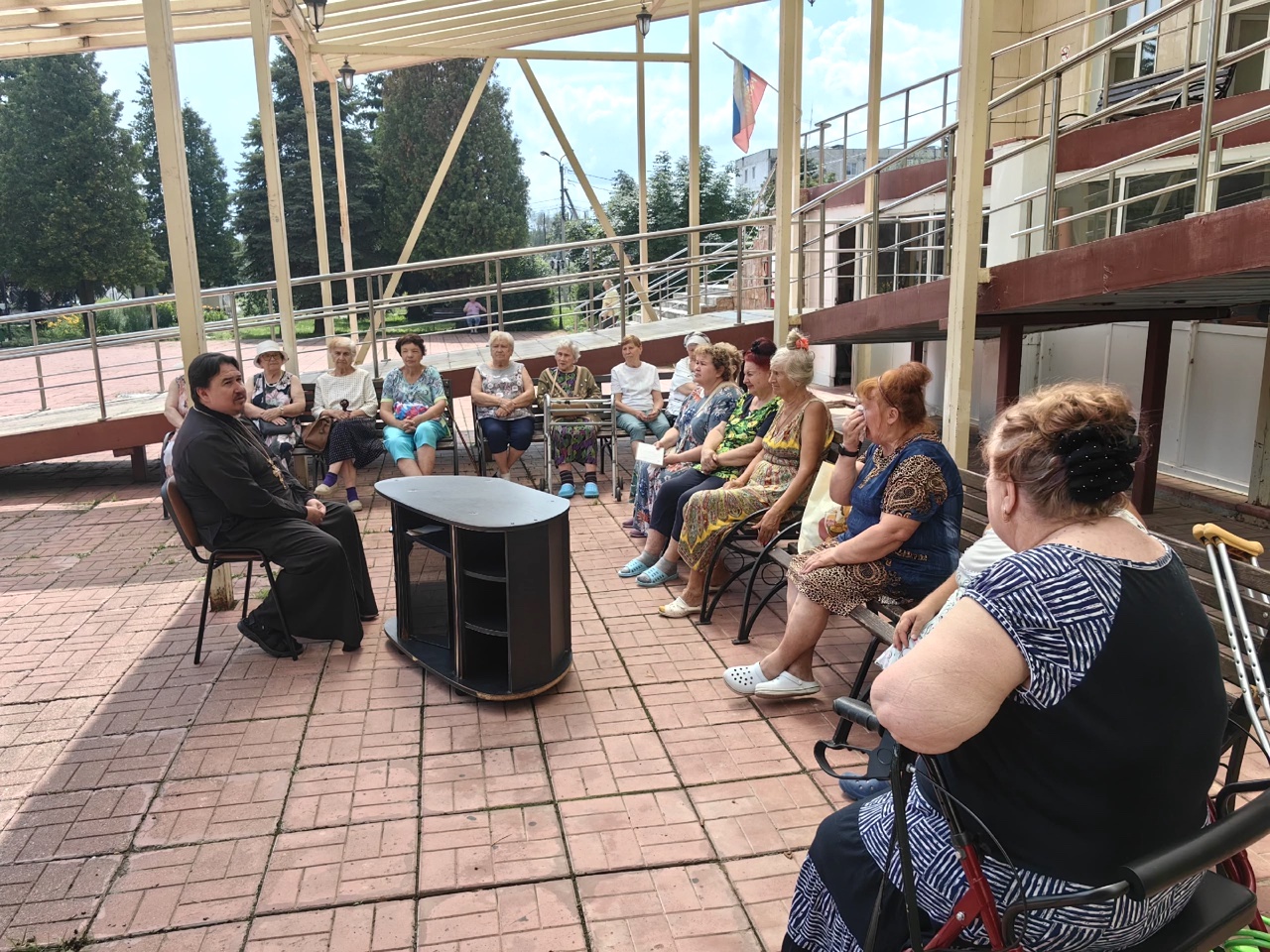 25 июля ответственный в Озерском благочинии за церковную благотворительность и социальное служение, настоятель Покровского храма села Сосновка иерей Арсений Писаревский встретился с получателями услуг комплексного центра социального обслуживания и реабилитации «Коломенский».