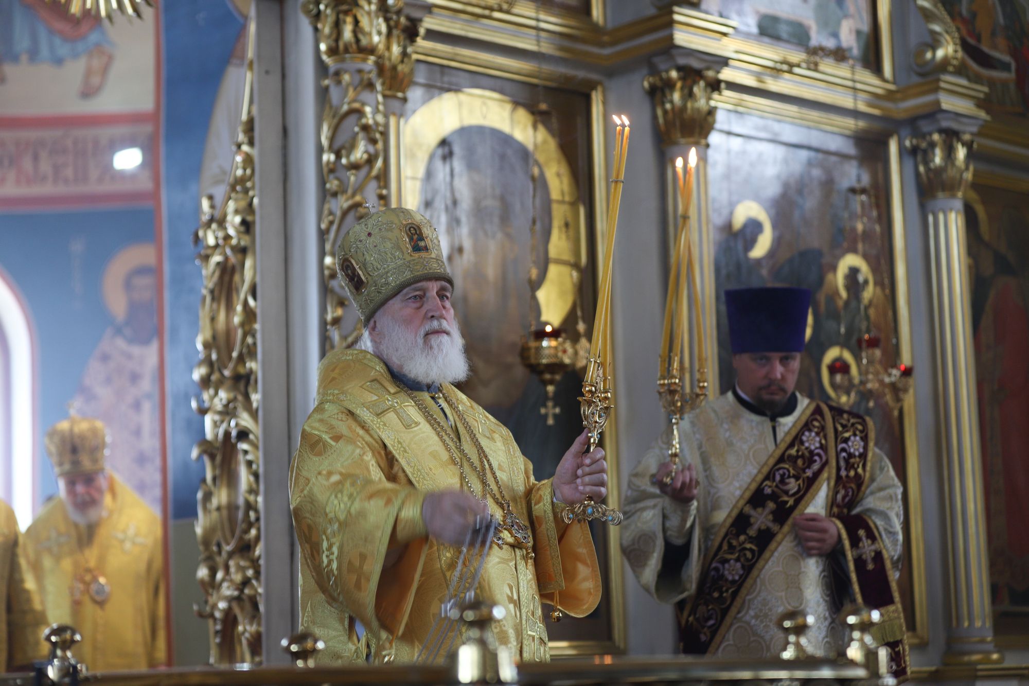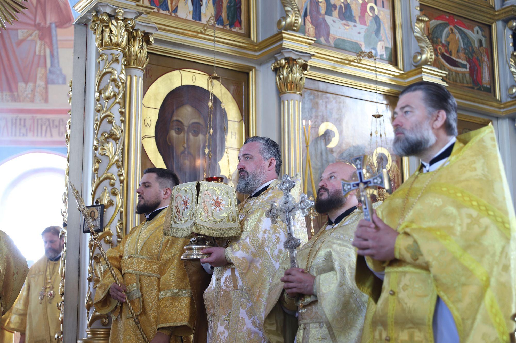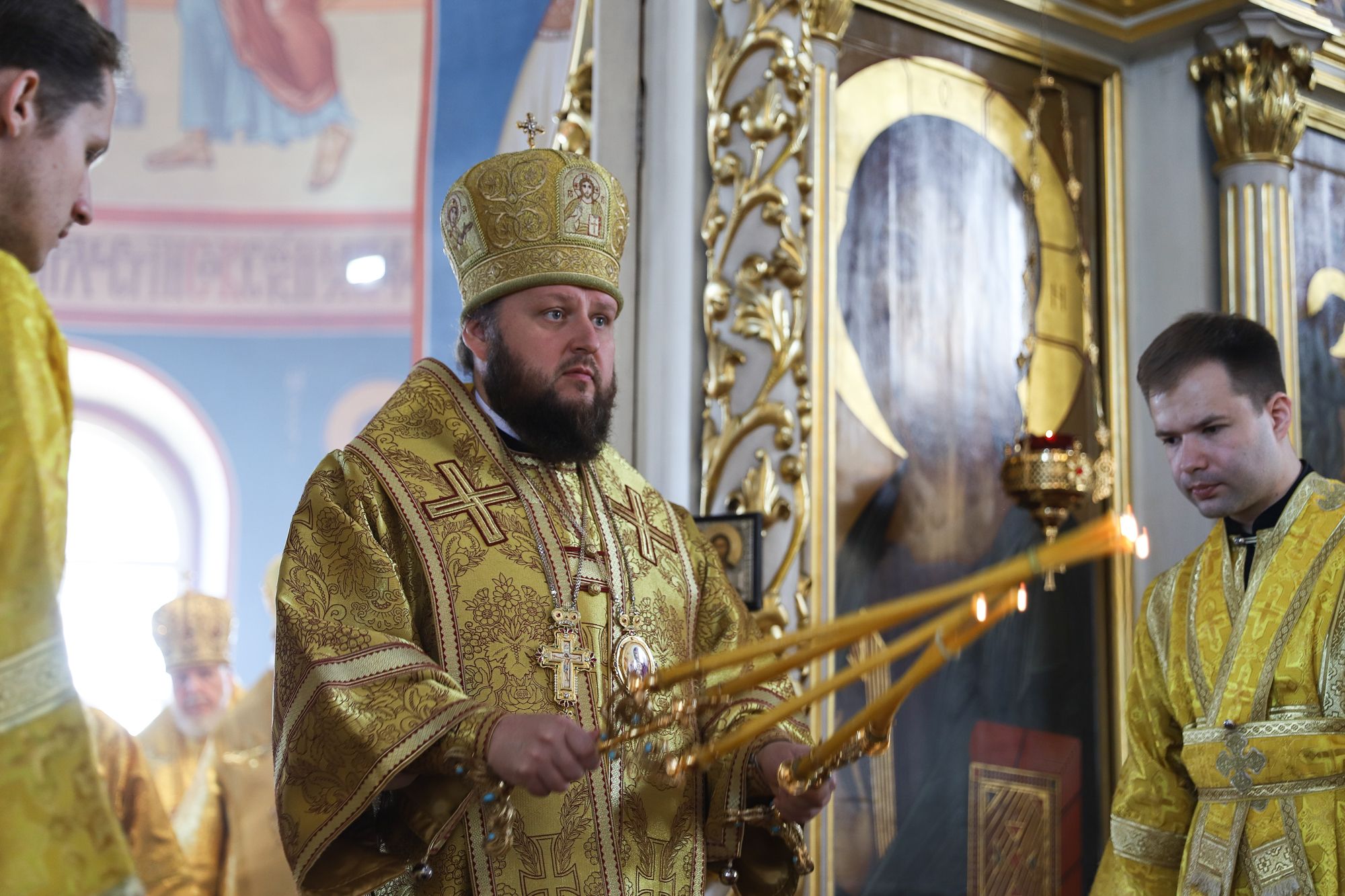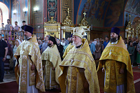 Его Высокопреосвященству сослужили: архиепископ Одинцовский и Красногорский Фома, архиепископ Подольский и Люберецкий Аксий; епископ Балашихинский и Орехово-Зуевский Николай; благочинный Богородского округа, настоятель Богоявленского собора протоиерей Марк Ермолаев; благочинный Щёлковского округа протоиерей Андрей Ковальчук; благочинный Орехово-Зуевского округа иеромонах Андрей (Коробков); благочинный Балашихинского округа иерей Михаил Конюхов и клирики благочиния.