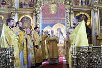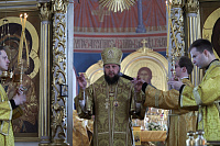 В завершение богослужения епископ Николай поблагодарил митрополита Павла за совершённое богослужение и преподнёс икону священномученика Константина Богородского, 30-летие обретения святых мощей которого празднуется в этом году, после чего владыка Павел обратился к молящимся с архипастырским словом.