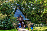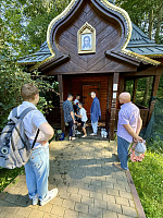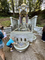 Затем паломники направились в деревню Талеж Чеховского района, где на подворье Давыдовой пустыни находится святой источник, освященный во имя преподобного Давида, а также храм Рождества Пресвятой Богородицы. Все желающие смогли окунуться, набрать святой воды и полюбоваться красотой русской природы.