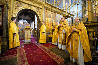 Из кафедрального соборного Храма Христа Спасителя в Успенский собор был принесен ковчег с частицей мощей равноапостольного великого князя Владимира. Святыня была установлена в соборе справа от Царских врат.