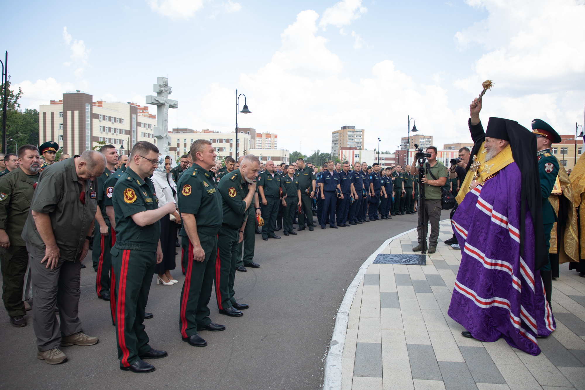 В этот же день владыка Николай в сослужении заведующего сектором Росгвардии Синодального отдела по взаимодействию с Вооруженными Силами и правоохранительными органами священника Романа Богдасарова, благочинного Балашихинского церковного округа священника Михаила Конюхова и настоятеля храма священника Максима Беликова совершил молебен по случаю Дня крещения Руси и возглавил крестный ход.
