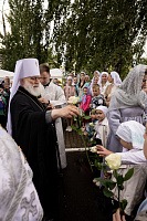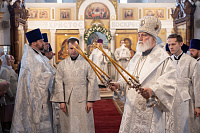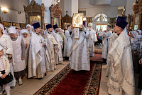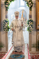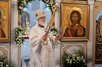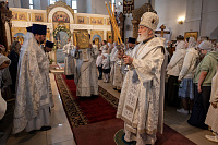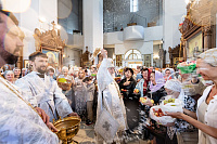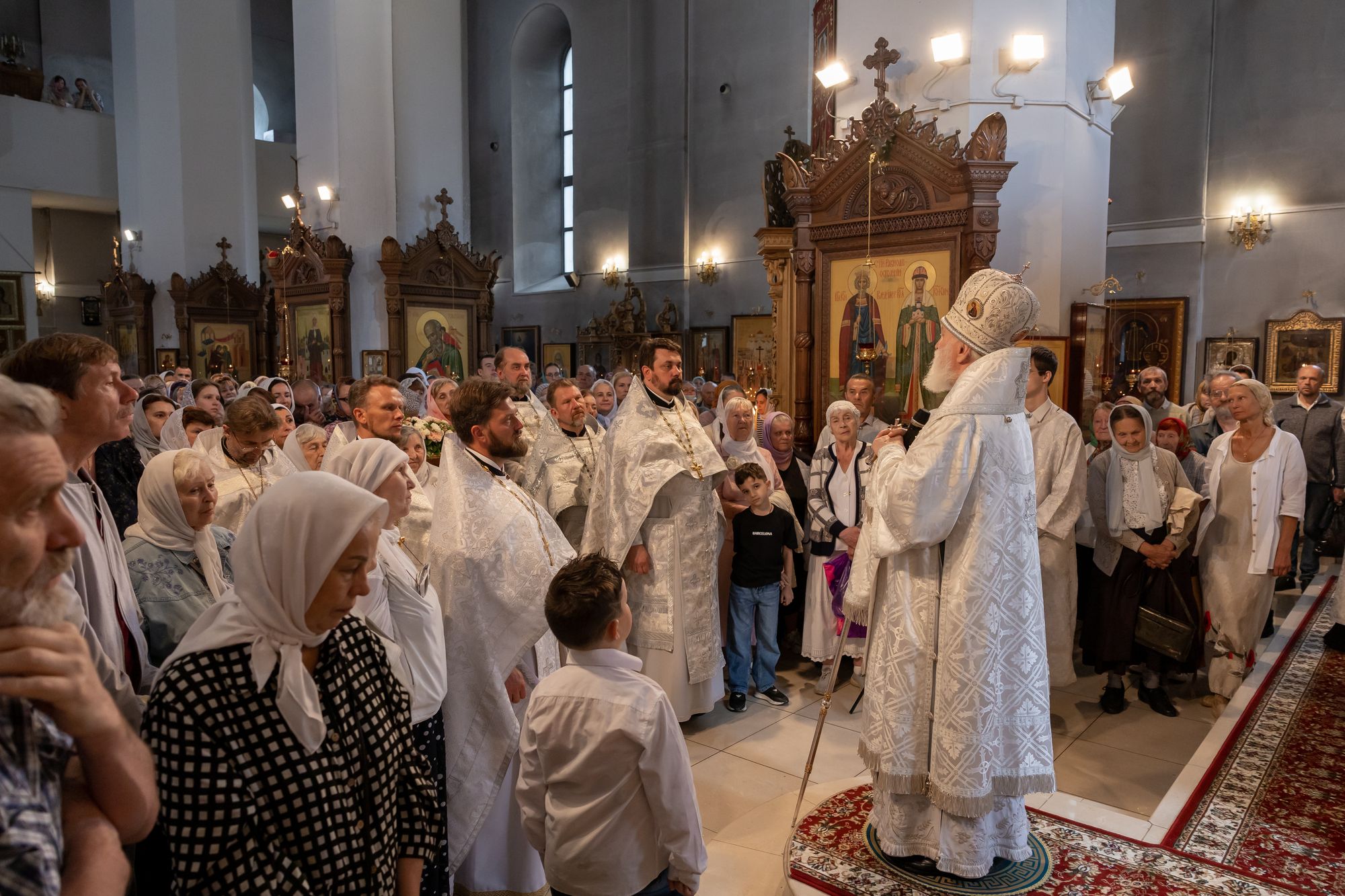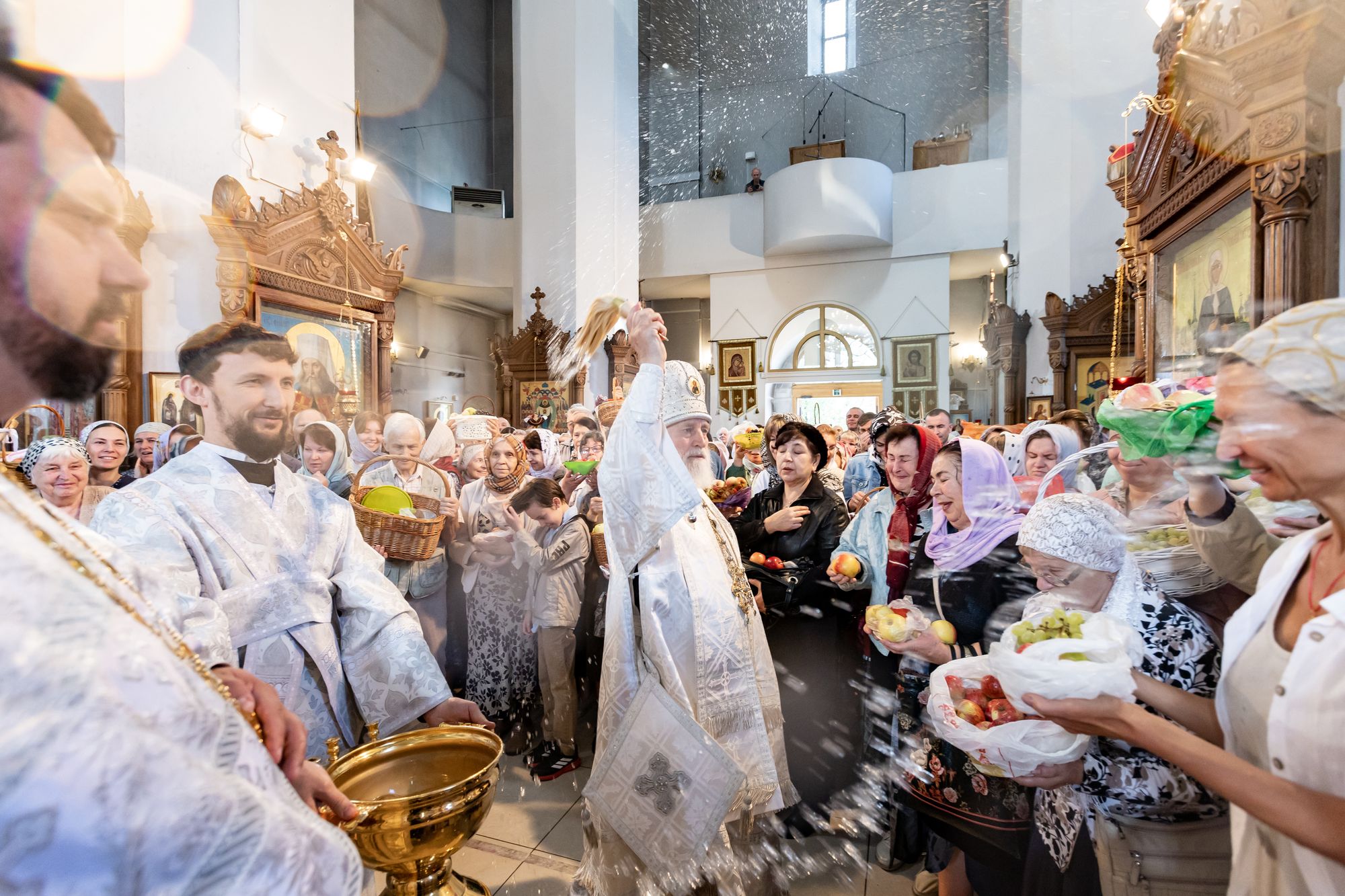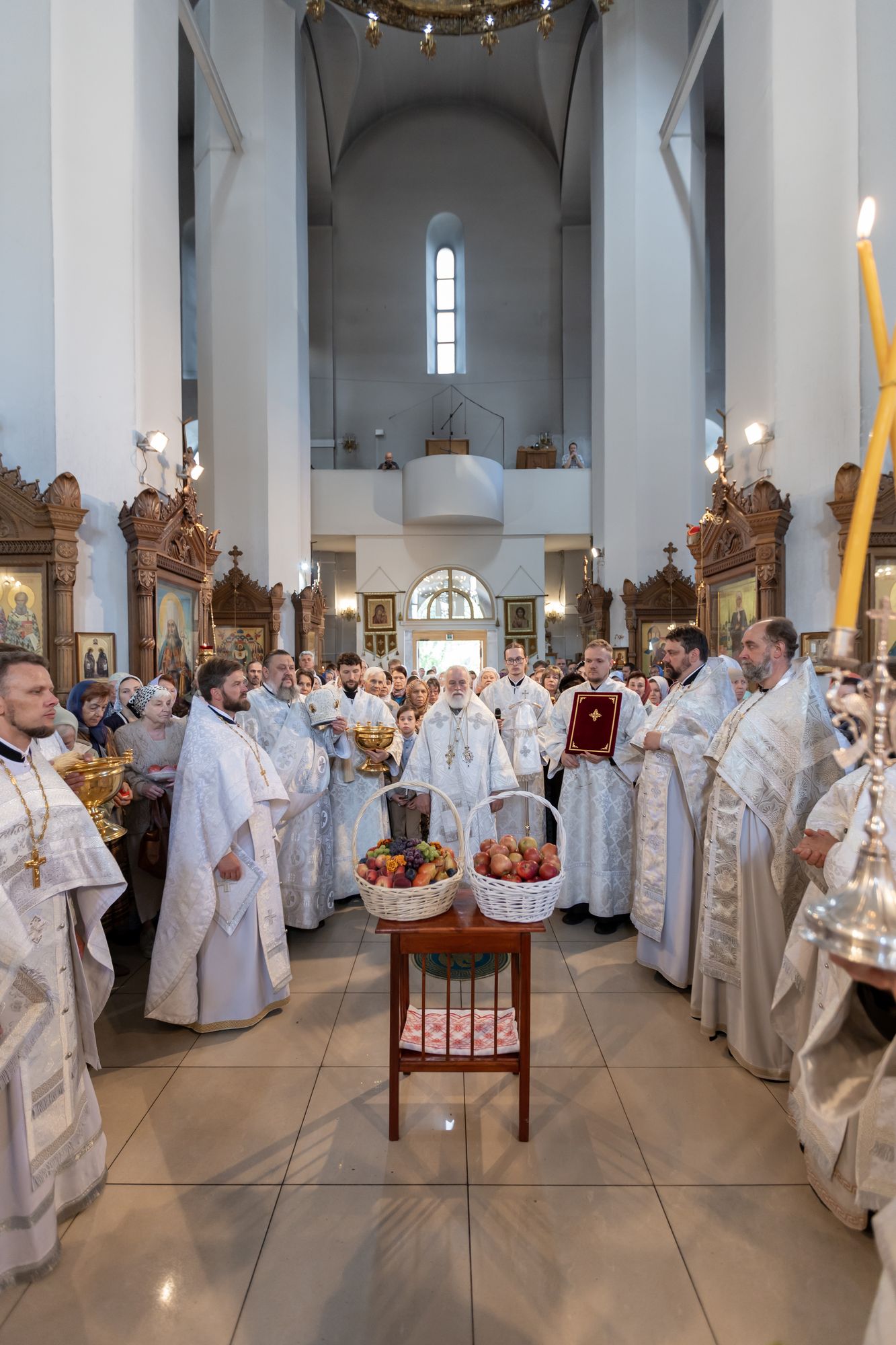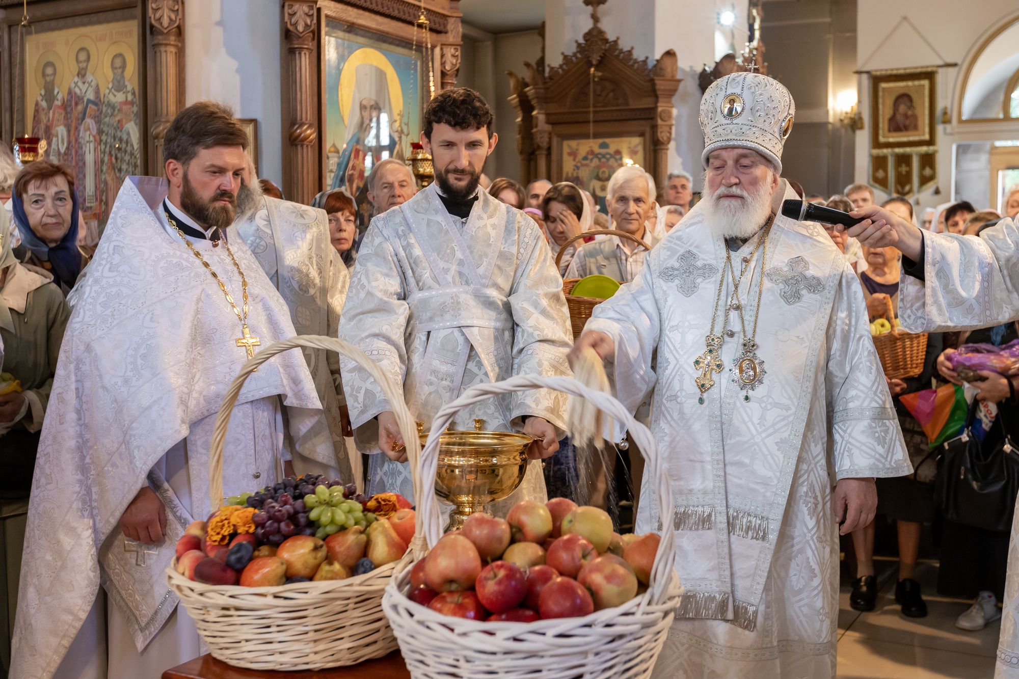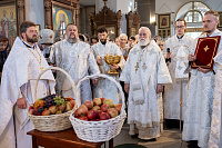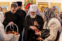 В завершение богослужения было совершено славление и освящение плодов нового урожая, после чего Владыка обратился к молящимся с архипастырским словом.