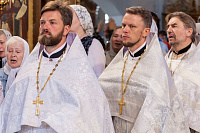 Богослужебные песнопения исполнил хор храма под управлением Константина Герасименкова.
