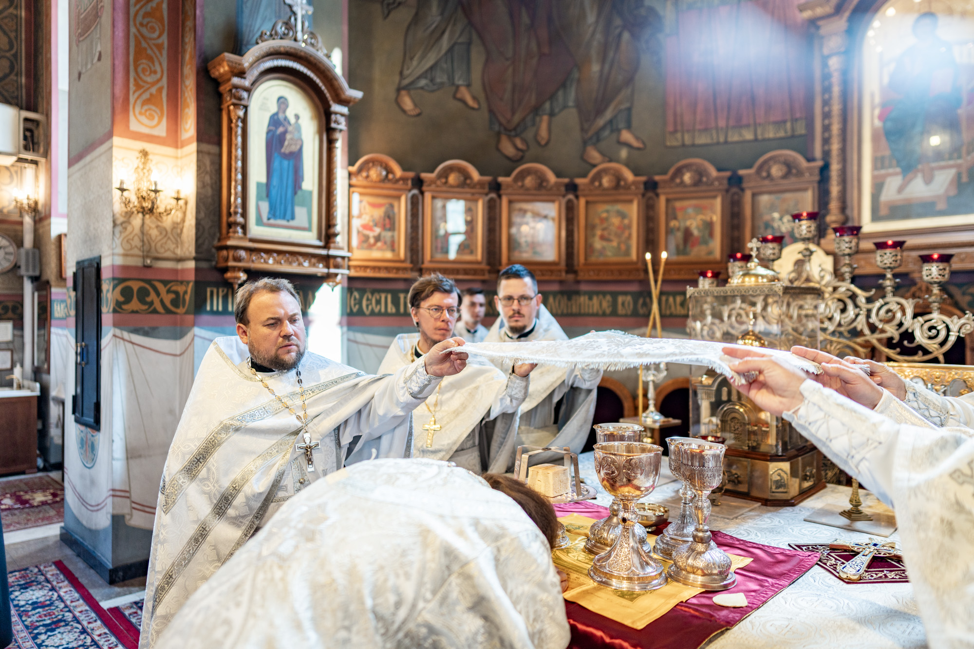 Его Высокопреосвященству сослужили секретарь Подольского епархиального управления иерей Константин Семёнов, член Епархиального совета протоиерей Пётр Иванов, благочинный Люберецкого церковного округа иерей Вячеслав Новак и духовенство собора.