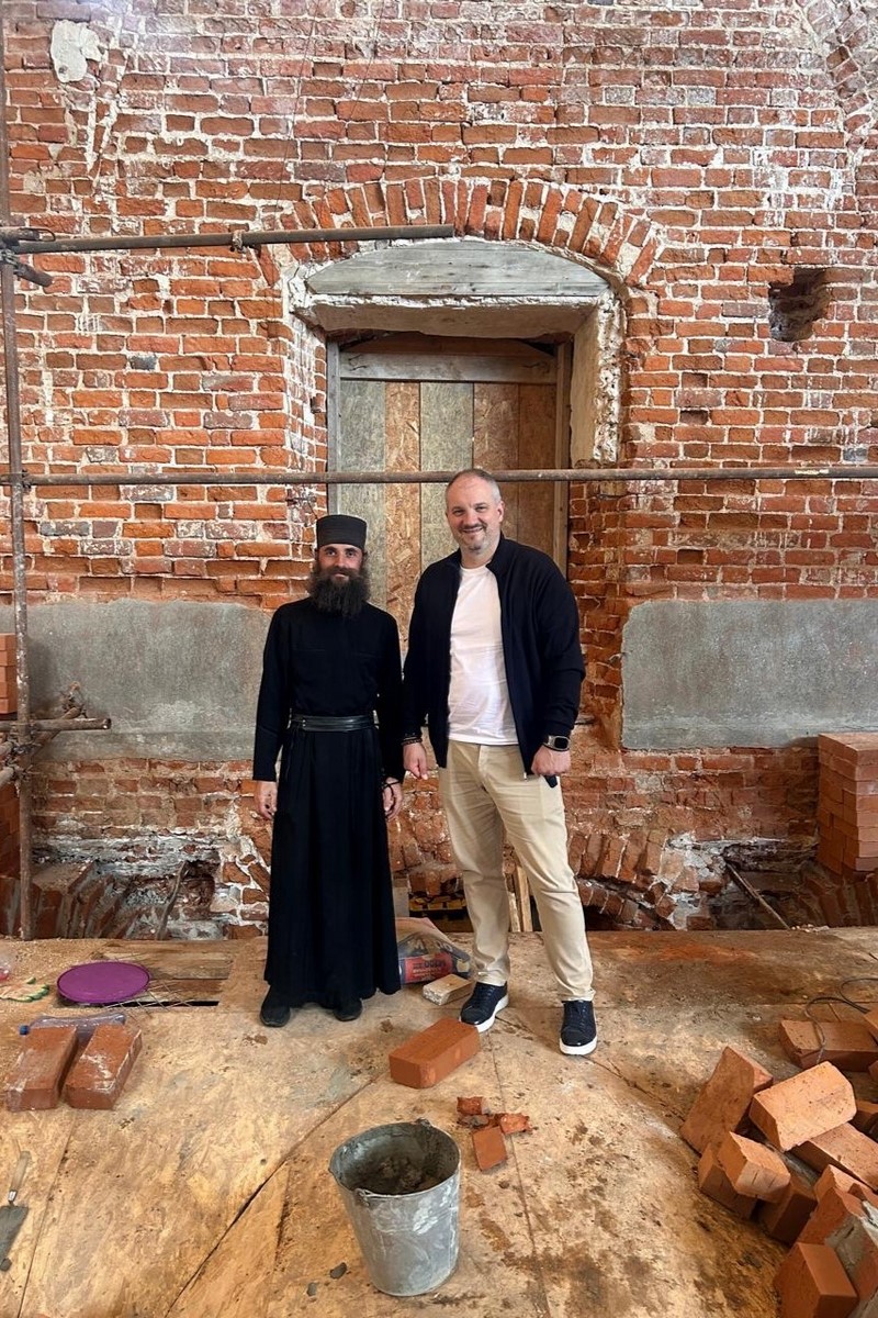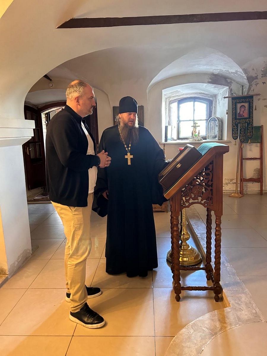 Михаил Николаевич ознакомился с ходом строительных работ и выразил готовность оказать дальнейшую поддержку для продолжения и успешного завершения реставрации. В благословение на будущие труды иеромонах Аристарх вручил ему икону Божией Матери.