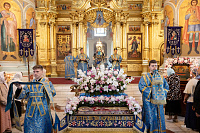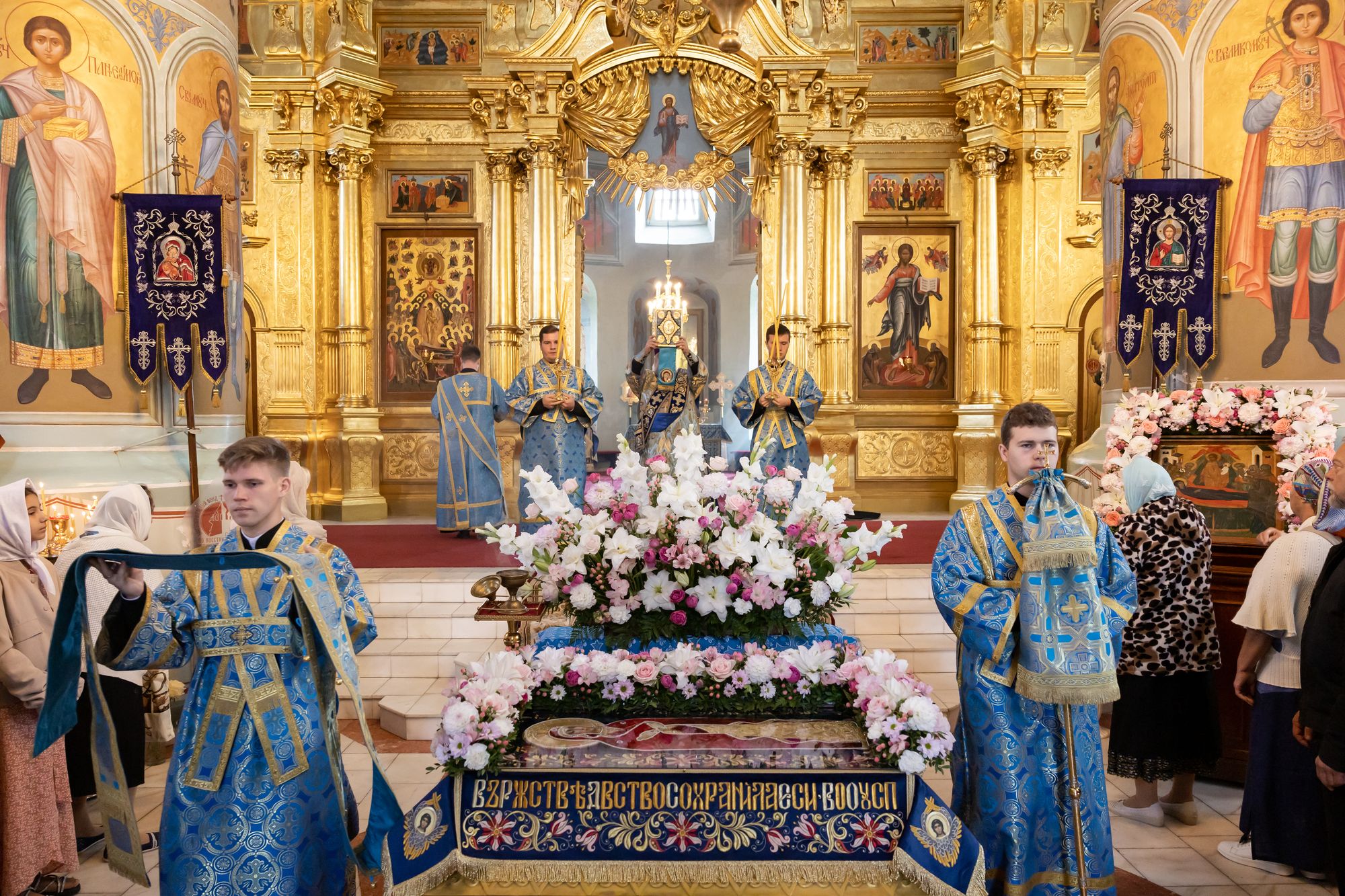 Богослужебные песнопения исполнил соборный хор под управлением Наталии Камышниковой.