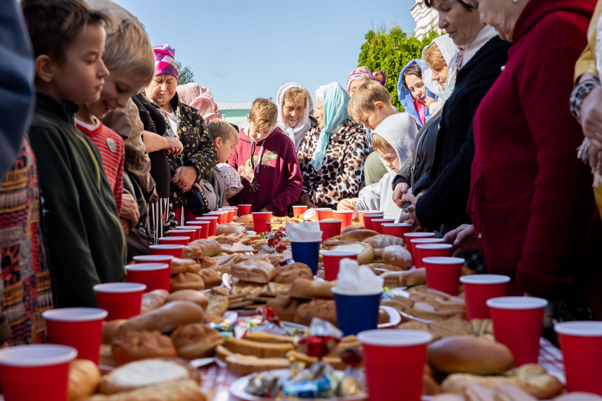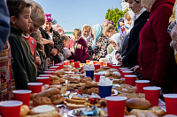 По окончании богослужения для прихожан возле собора было приготовлено праздничное угощение.