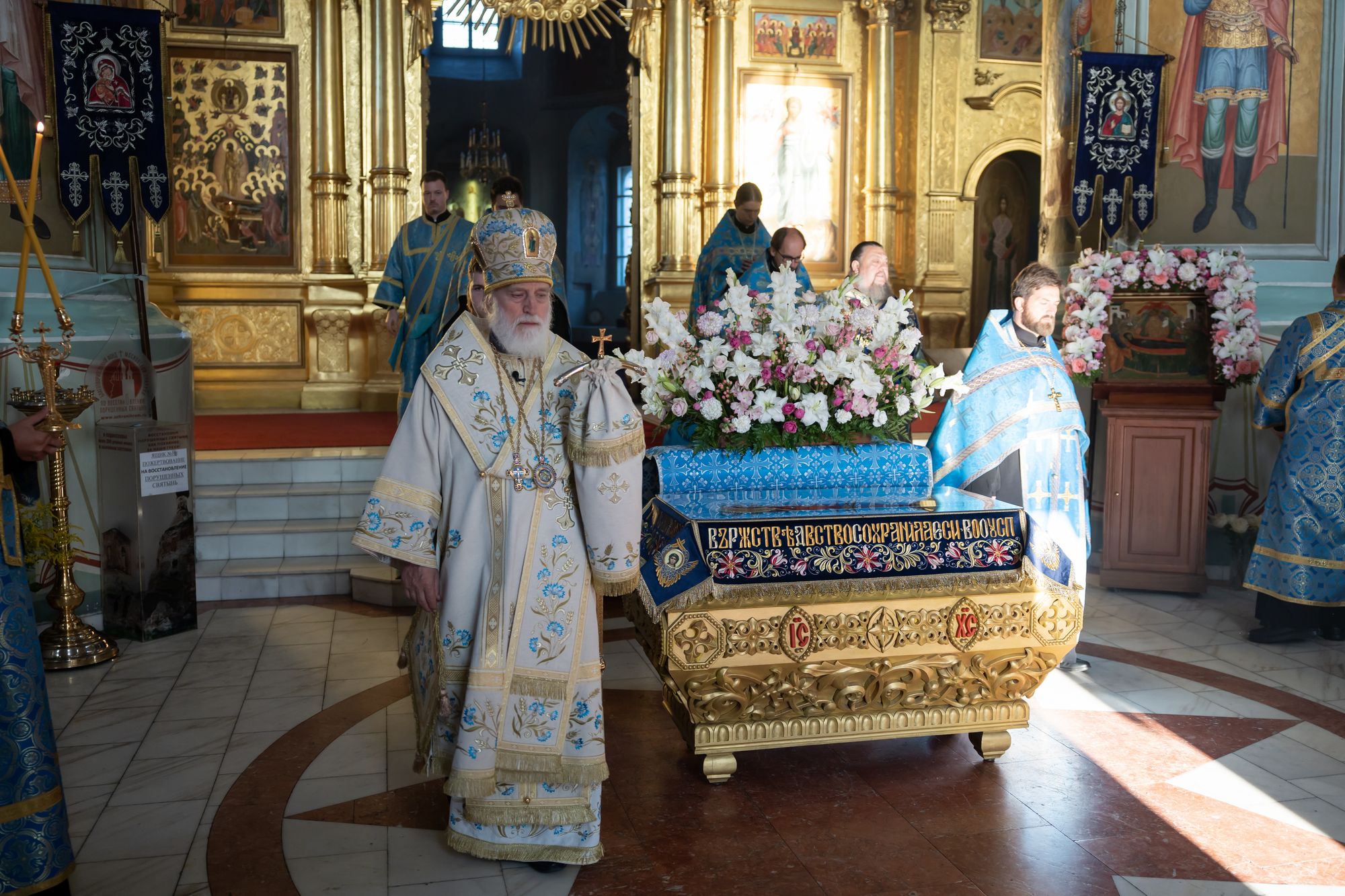 28 августа 2025 года, накануне попразднства Успения Пресвятой Богородицы и перенесения из Едессы в Константинополь Нерукотворенного Образа (Убруса) Господа Иисуса Христа, митрополит Крутицкий и Коломенский Павел совершил утреню с чином погребения плащаницы Пресвятой Богородицы в Успенском кафедральном соборе города Коломны.