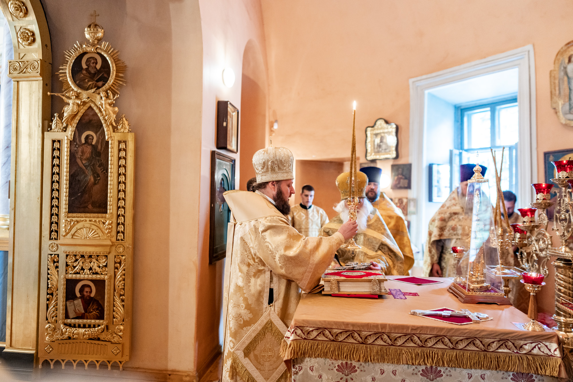 Его Высокопреосвященству сослужили секретарь Подольского епархиального управления иерей Константин Семёнов, настоятель храма протоиерей Владимир Переслегин и духовенство Подольской епархии.