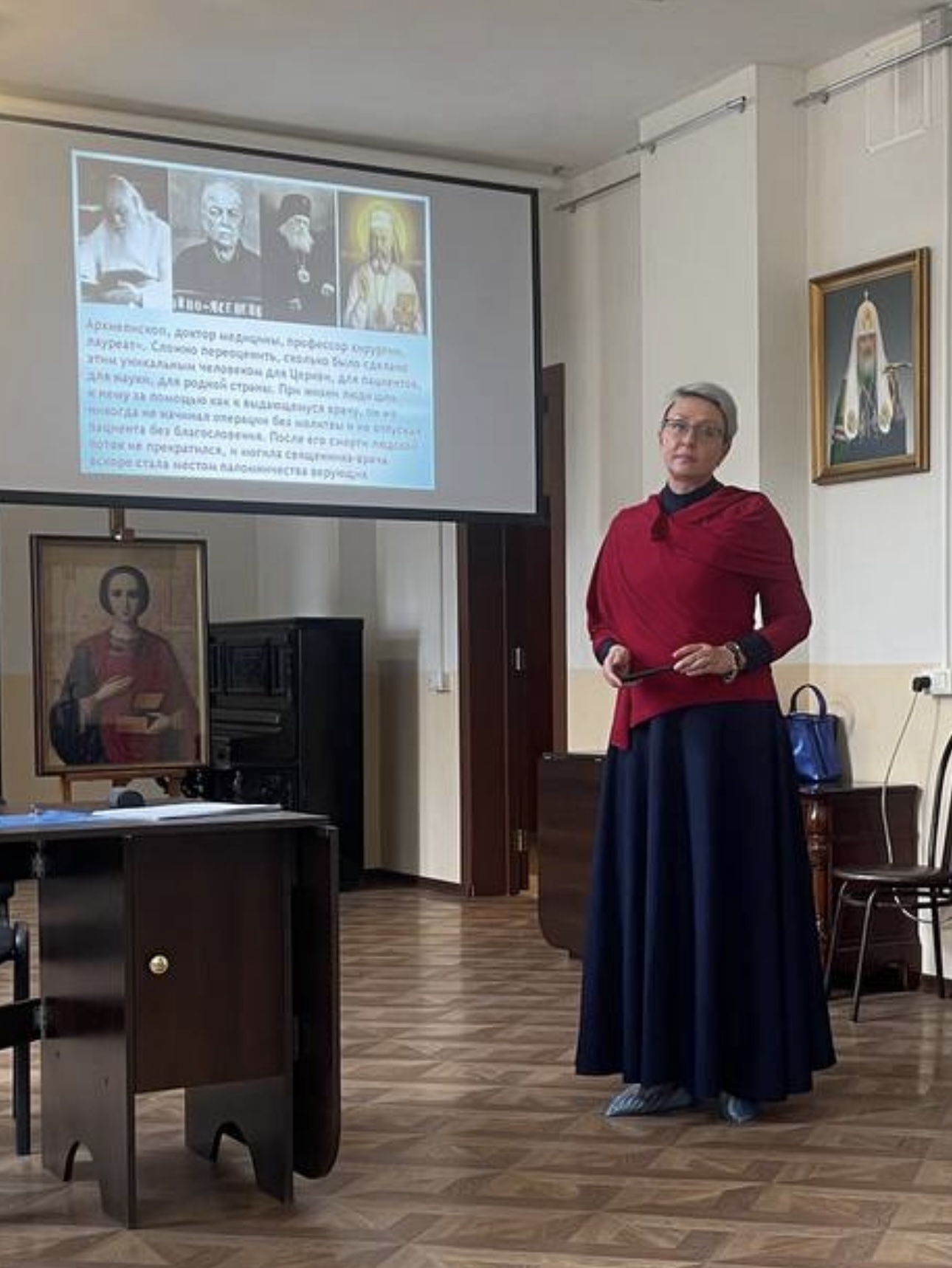 Ольга Николаевна рассказала участникам встречи о жизни архиепископа Луки Крымского военного врача Валентина Феликсовича Войно-Ясенецкого).