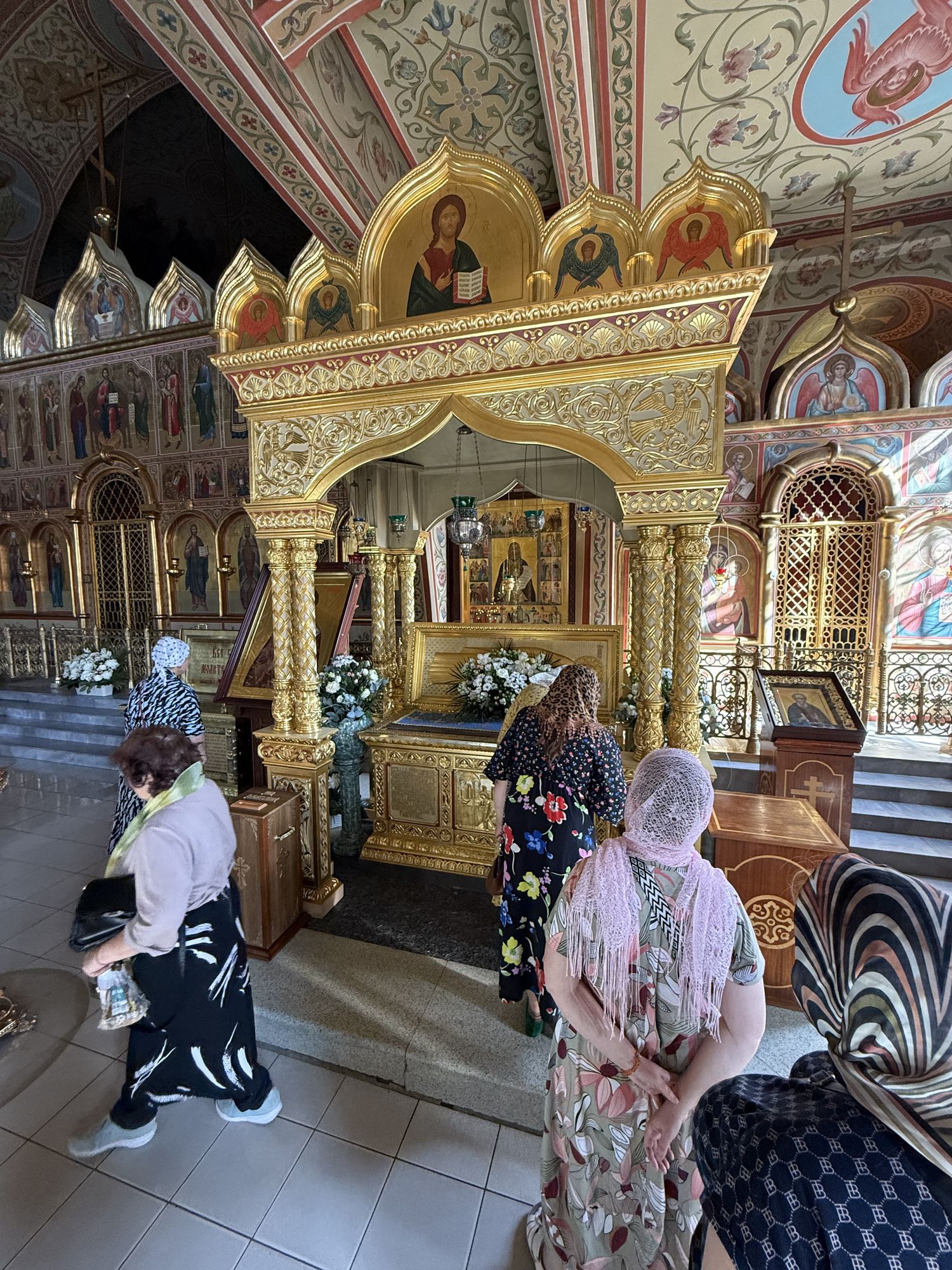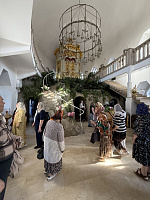 Следующим пунктом путешествия стал Гефсиманский Черниговский Скит - особое место, поражающее своей красотой и благолепием. Для Коломенских паломников была организована экскурсия по основанному в 1844 году митрополитом Филаретом (Дроздовым) скиту с двумя подземными храмами и четырнадцатью кельями, в которых монахи скита жили вплоть до революции. В Черниговском храме паломники смогли приложиться к мощам преподобного Варнавы Гефсиманского, к камню от гроба Богородицы из Гефсиманского сада, а также к чудотворной иконе Божией Матери «Черниговская Гефсиманская».