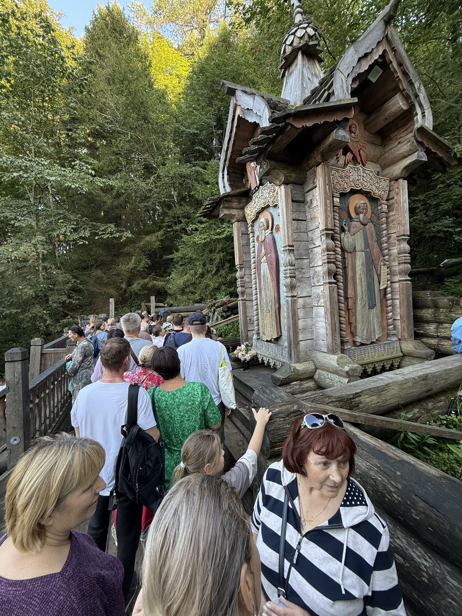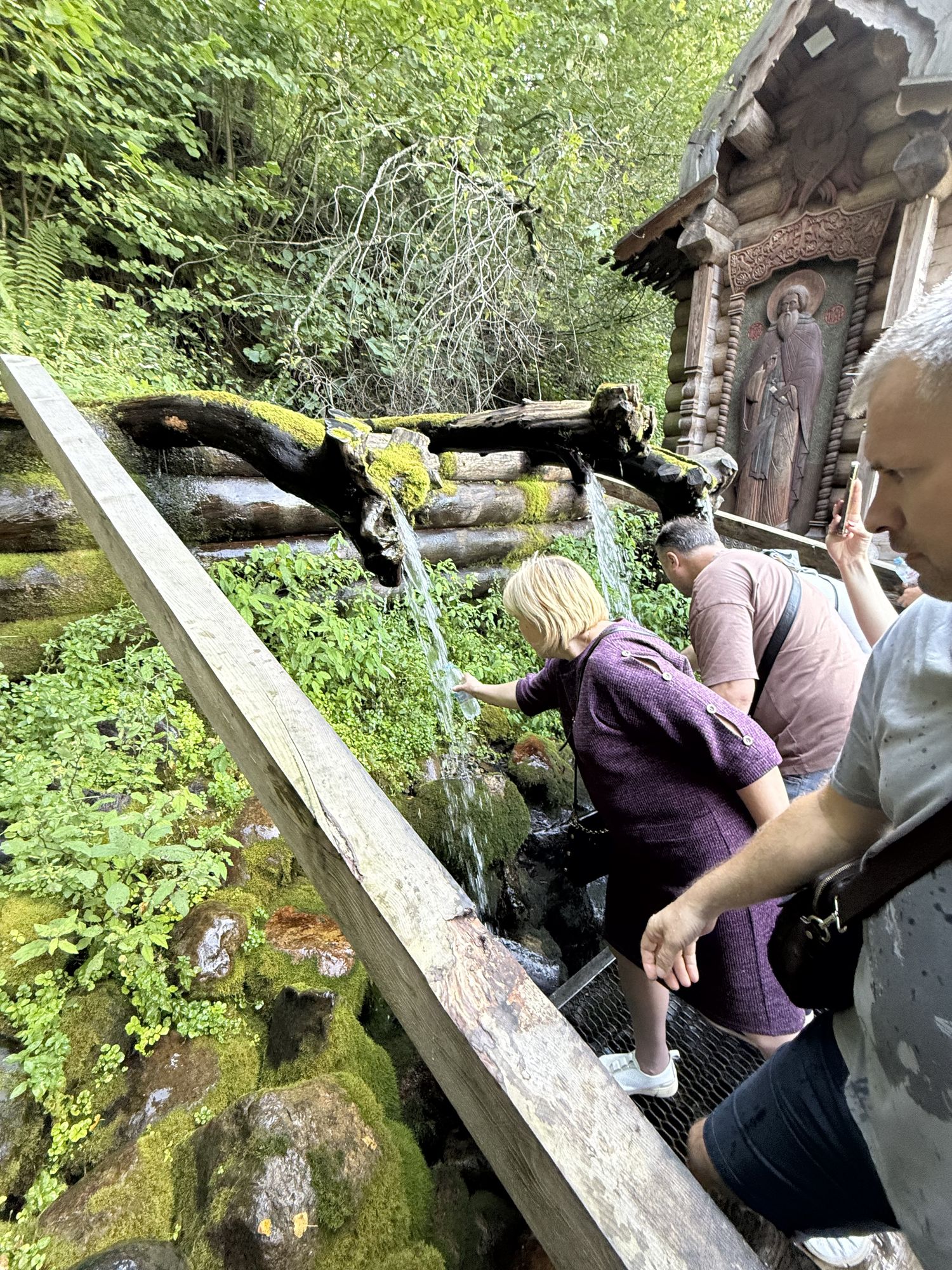 Последним пунктом паломнической поездки стал источник Гремячий ключ — подворье Троице-Сергиевой Лавры. В наши дни Гремящий ключ - уникальный ансамбль церковного деревянного зодчества, включающий в себя три храма, звонницу, мосты и лестницы к водопадам, купели. Все желающие смогли окунуться и набрать святой воды.