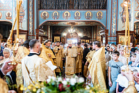 31 августа архиепископ Подольский и Люберецкий Аксий совершил Божественную литургию в соборе Всех святых, в земле Русской просиявших города Домодедово.