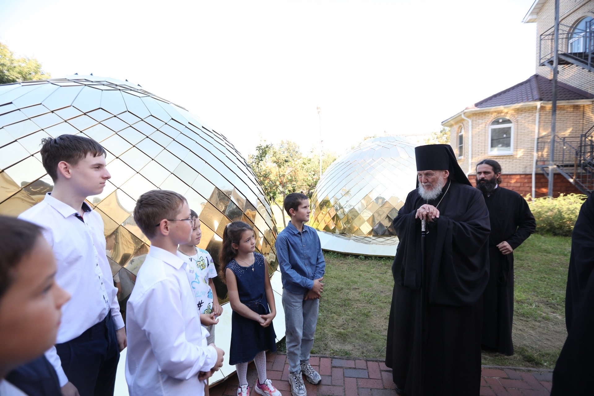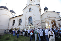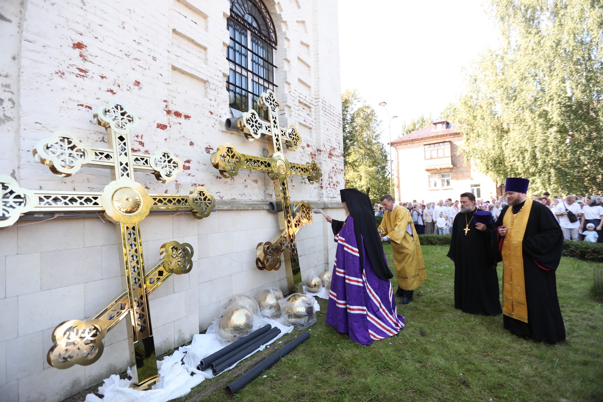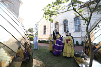 Затем владыка Николай совершил молебен на начало учебного года и освятил новые кресты и купола для Троицкого храма.