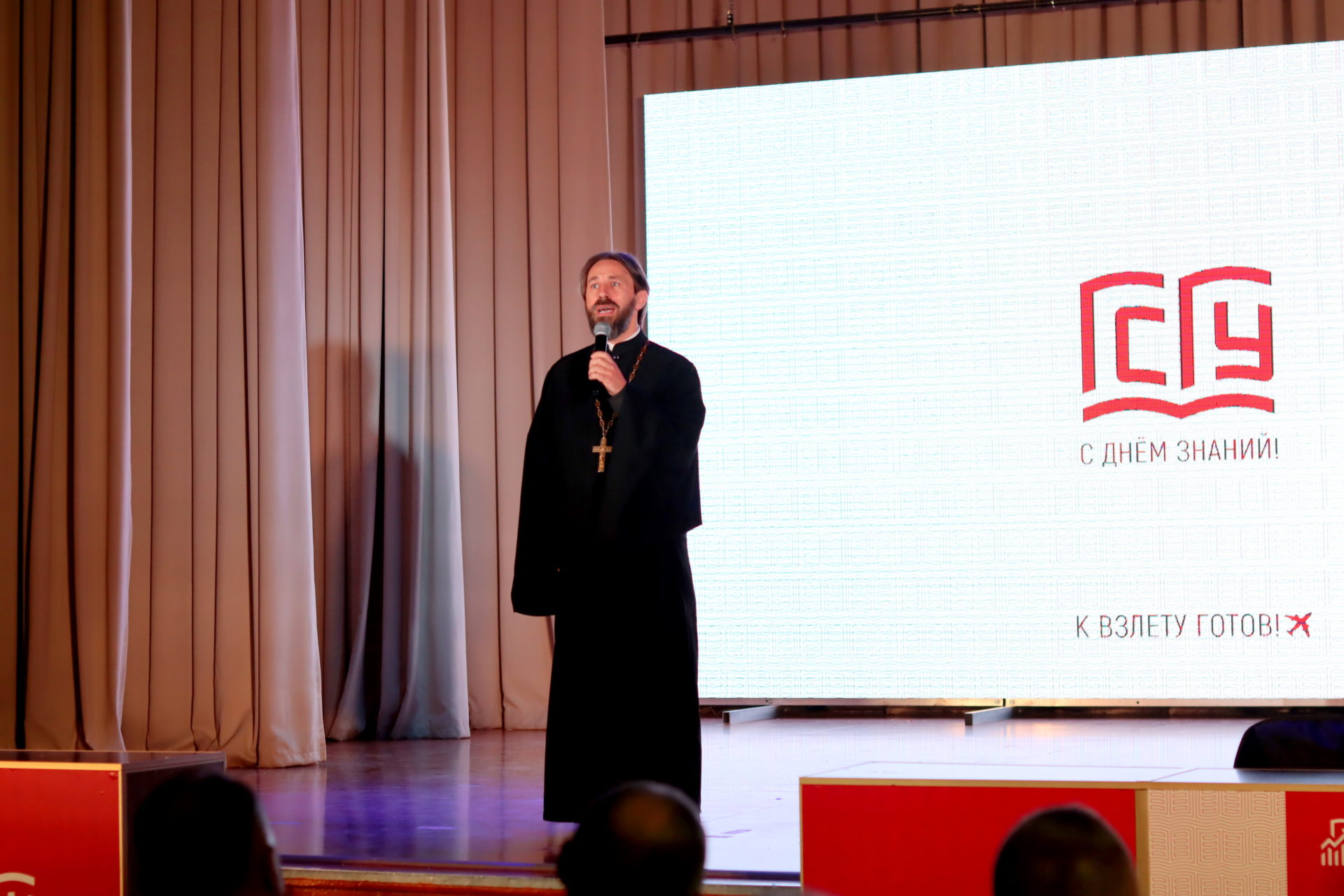 Отец Александр поздравил ректора, профессорско-преподавательский состав, гостей и студентов университета с этим знаменательным днем. В своем слове священник отметил, что одним из самых ценных качеств для человека является умение учиться, познавать новое и пожелал, чтобы учеба стала для всех по-настоящему любимым делом, чтобы в сердцах ребят никогда не угасал интерес к жизни, людям и хорошим книгам, любовь к добру и красоте. Потому что, все это делает жизнь человека полной и радостной, помогает ему стать успешным и счастливым, менять к лучшему и свое сердце, и окружающий мир.