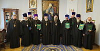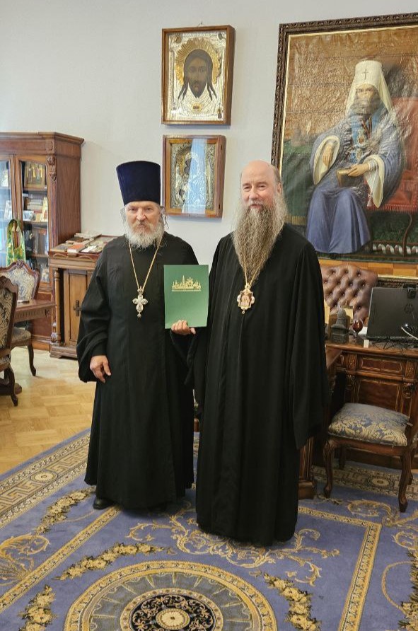 На церемонии награждения, которая прошла в Свято-Троицкой Сергиевой лавре в кабинете ректора Московской духовной академии, присутствовали секретарь Сергиево-Посадского епархиального управления протоиерей Иоанн Монаршек и благочинный Всехсвятского церковного округа протоиерей Василий Кислянка.