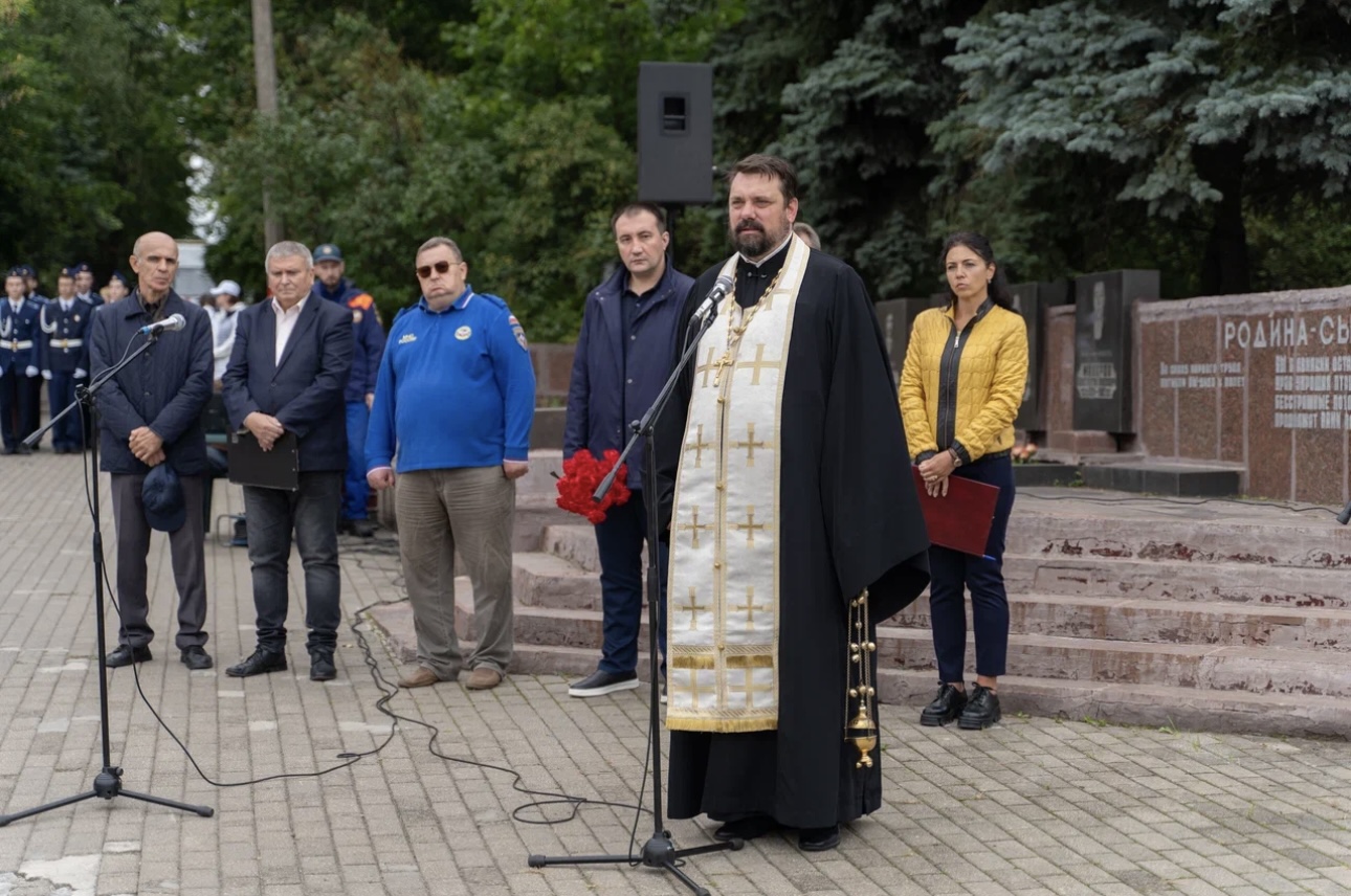 После вступительного слова отец Дмитрий отслужил литию в память обо всех погибших при теракте. Присутствующие почтили память погибших минутой молчания. В окончание памятного митинга были возложены цветы к мемориалу.