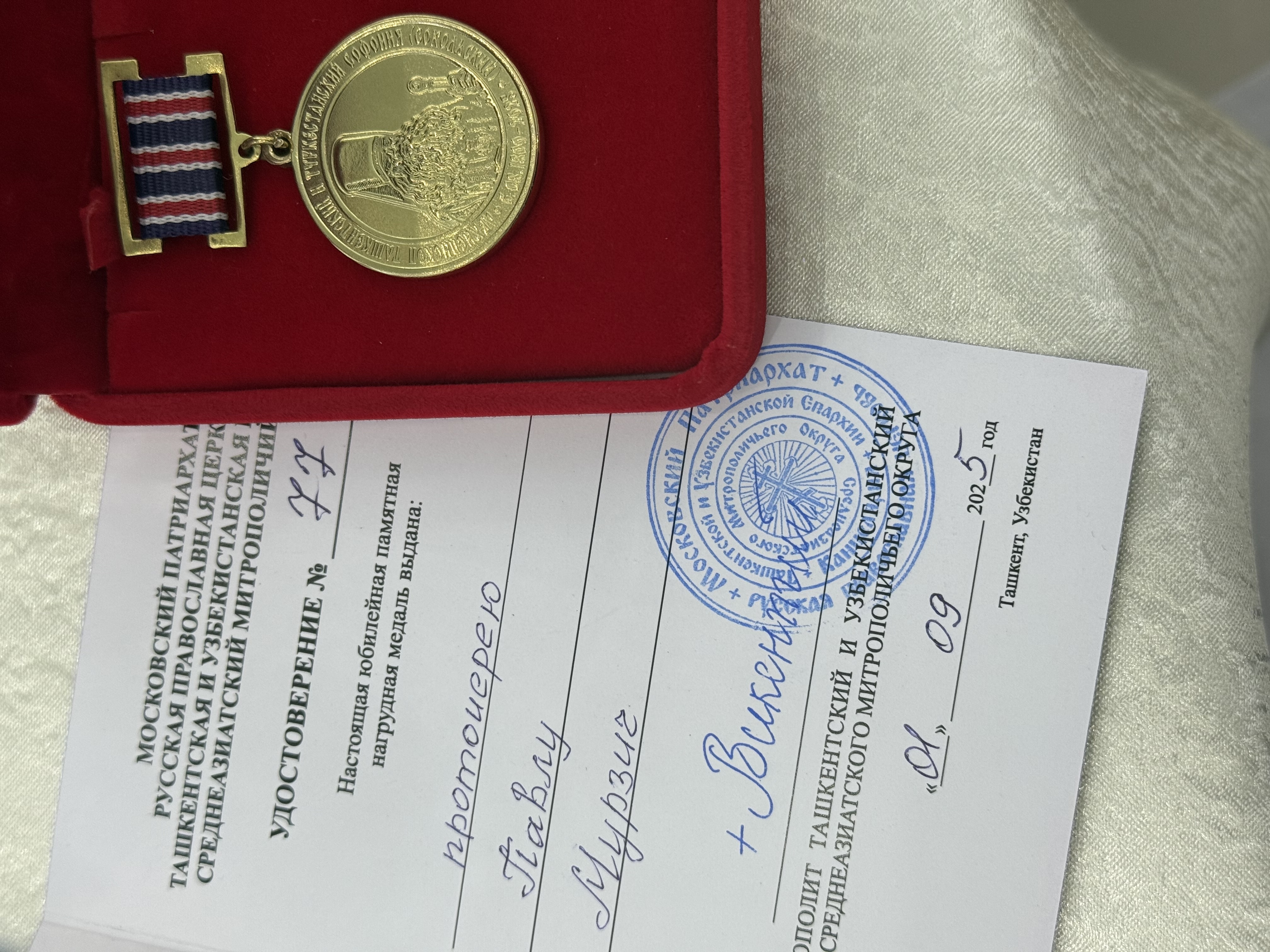 Во время торжественного приема в Епархиальном управлении Ташкентской епархии за участие в XII региональных Рождественских образовательных чтениях Среднеазиатского митрополичьего округа по благословению митрополита Ташкентского и Узбекистанского Викентия протоиерей Павел Мурзич был удостоен юбилейной памятной медали «К 225-летию со дня рождения архиепископа Ташкентского и Туркестанского Софония (Сокольского)».