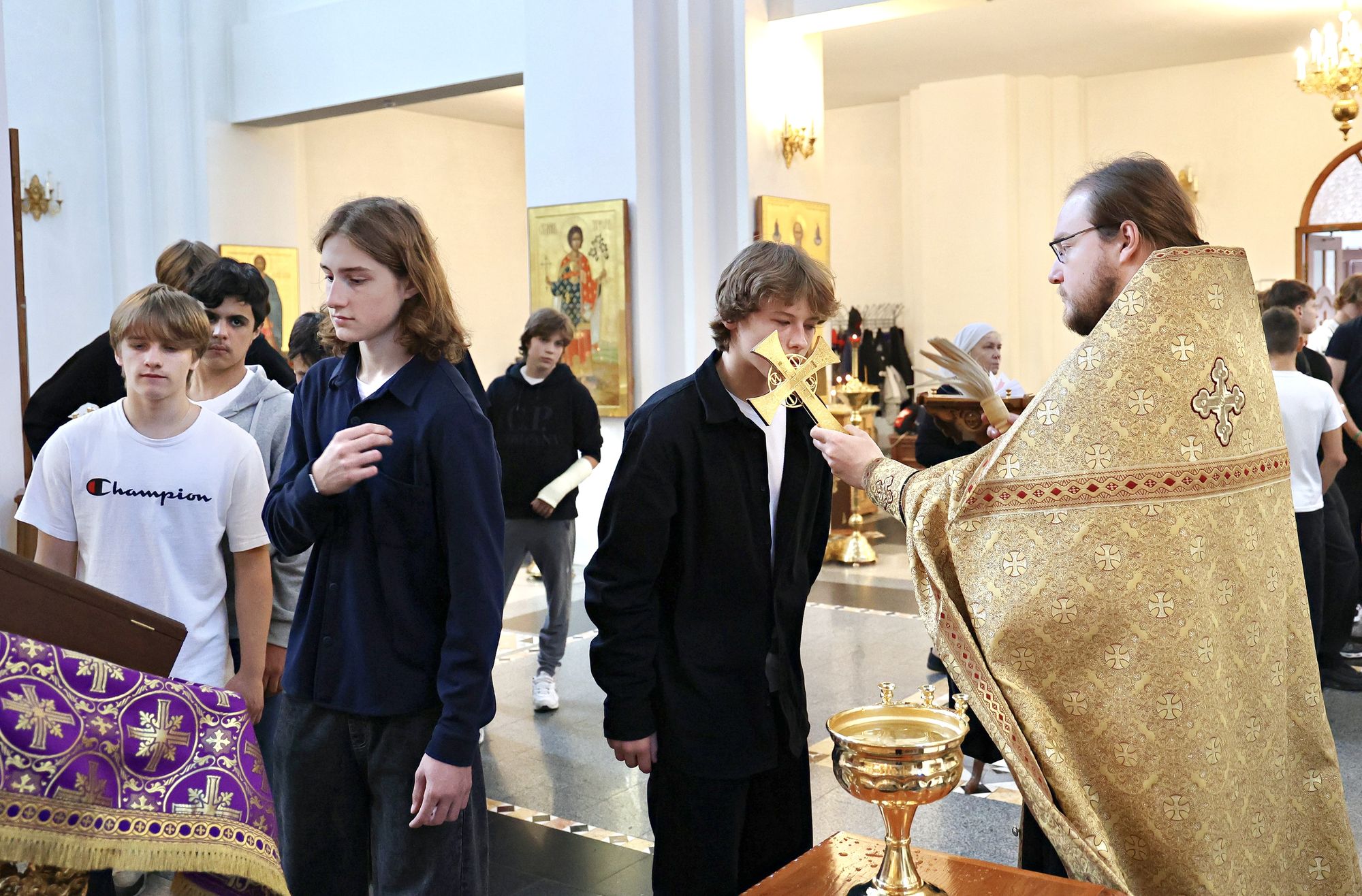 10 сентября 2025 года Иерусалимский храм г. Воскресенск посетила команда юных спортсменов хоккейной школы «Химик» во главе с тренером В.В. Дрындиным.