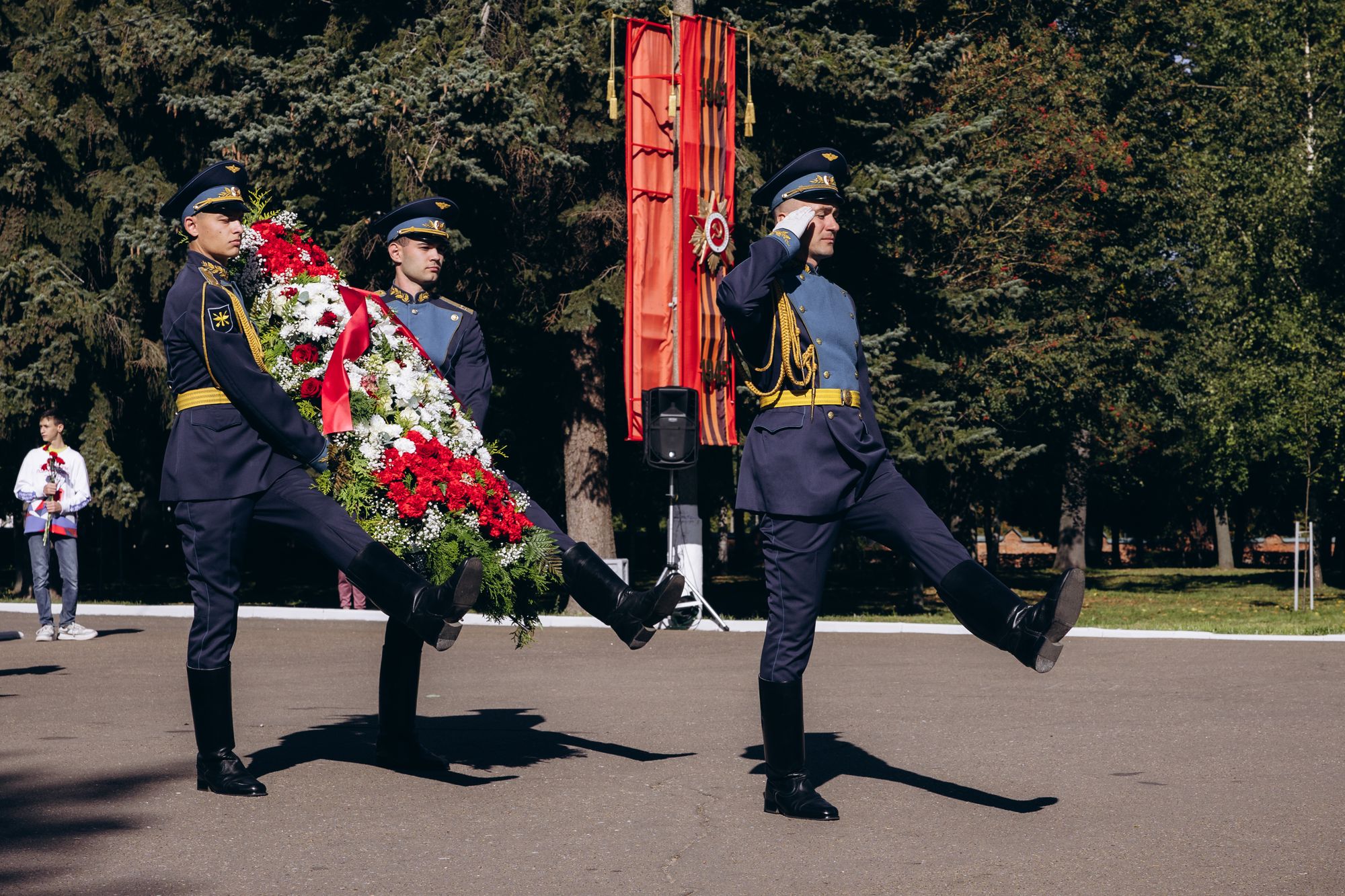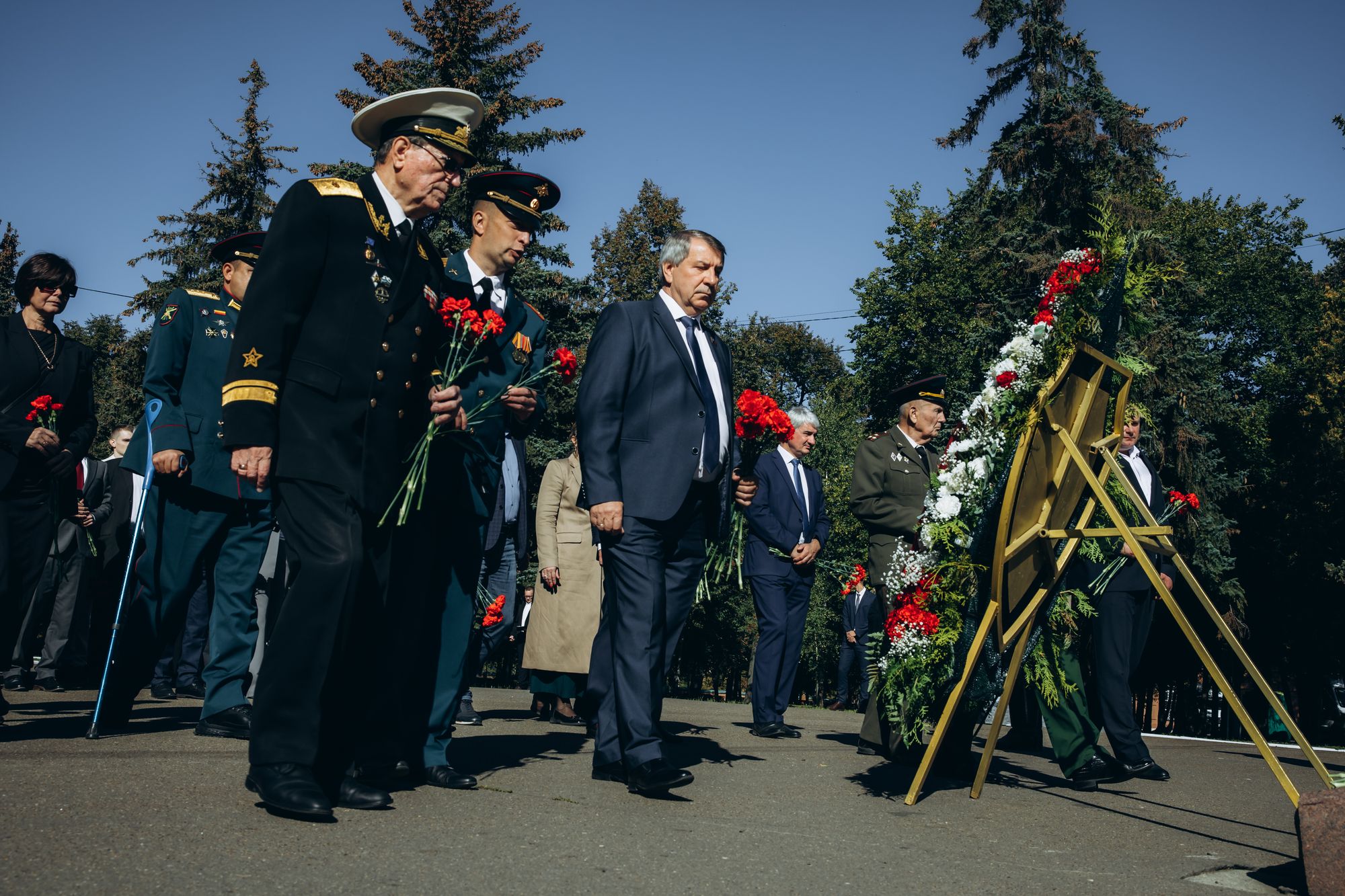 Начались торжества с возложения венка и цветов к мемориалу «Коломенцам, отдавшим жизнь за Родину» в Мемориальном парке.
