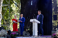 После этого почётные гости проследовали на основную площадку праздничных мероприятий – в открытый год назад после реконструкции Парк Мира.