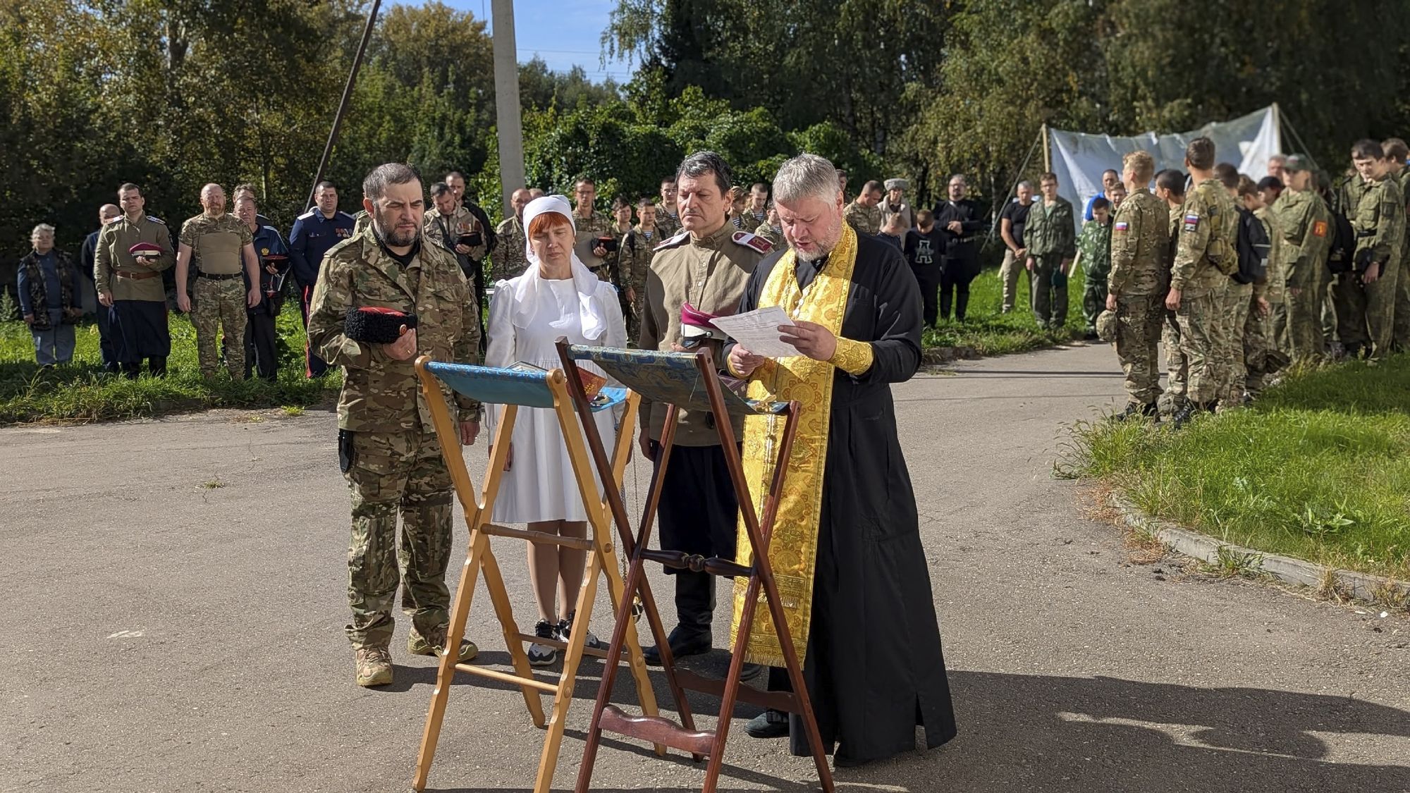 Перед началом мероприятия настоятель Знаменского храма и ответственный за взаимодействие с казачеством в Щёлковском благочинии священник Олег Атласов совершил молебен, благословил открытие турнира и подарил хутору «Щёлковский» икону Собора Архистратига Михаила.