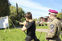 Воспитанники подмосковных детских военно–патриотических клубов и объединений состязались в стрельбе из лука и пневматики, разбирали и собирали оружие, бегали на дистанции, учились пользоваться средствами химической защиты под руководством казаков–инструкторов.