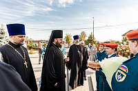 За праздничным богослужением молились начальник пожарно-спасательной части №213 мкрн. Востряково С.В.Стёпин, а также кадеты детского пожарно-спасательного класса Зарёвской средней школы г.о. Домодедово.