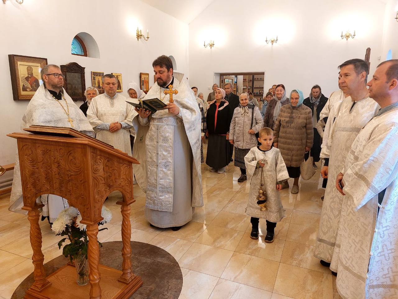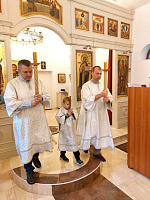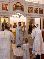 После заамвонной молитвы был совершен крестный ход вокруг храма и славление у праздничной иконы, затем благочинный отец Димитрий обратился к прихожанам с пастырским словом. После богослужения все желающие были приглашены на чаепитие.