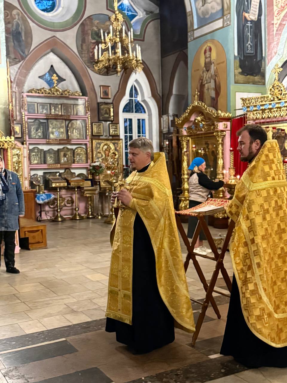 Настоятель храма протоиерей Иоанн Монаршек в сослужении иерея Александра Сорокина совершили молебен перед началом учебного года, за которым молились слушатели 1-го и 2-го курсов. Затем отец Иоанн преподал благословение учащимся, а священник Александр провел их в кабинеты здания Воскресной школы и познакомил с правилами обучения на курсах.