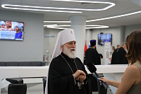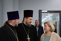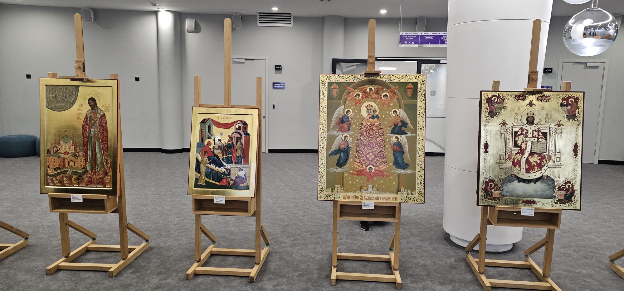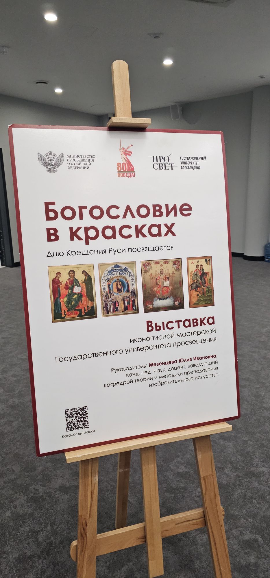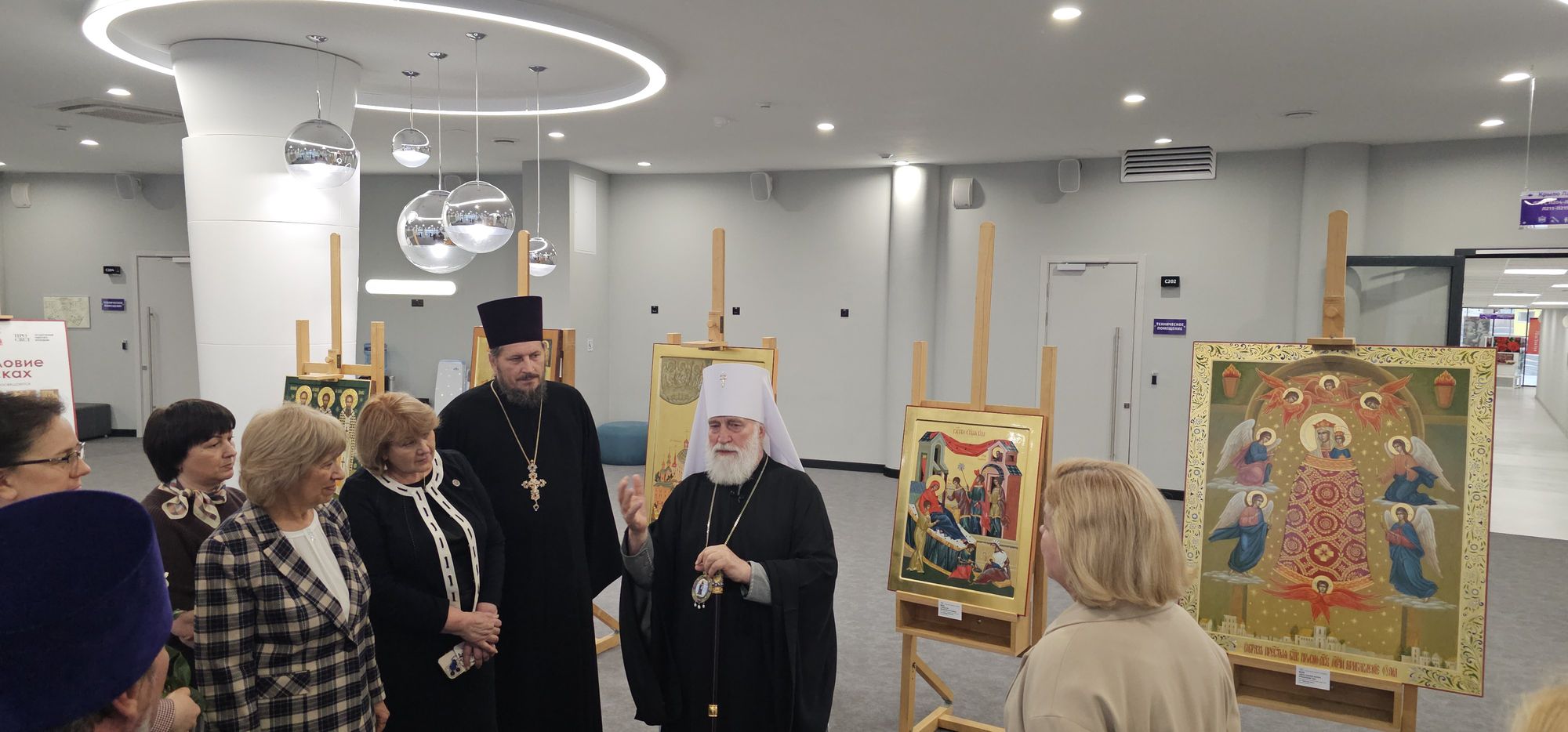 После окончания театрализованного урока митрополит Крутицкий и Коломенский Павел и первый заместитель министра образования Московской области А.В. Гребцова вместе с гостями мероприятия посетили выставку «Богословие в красках», подготовленную иконописной мастерской Государственного университета просвещения.