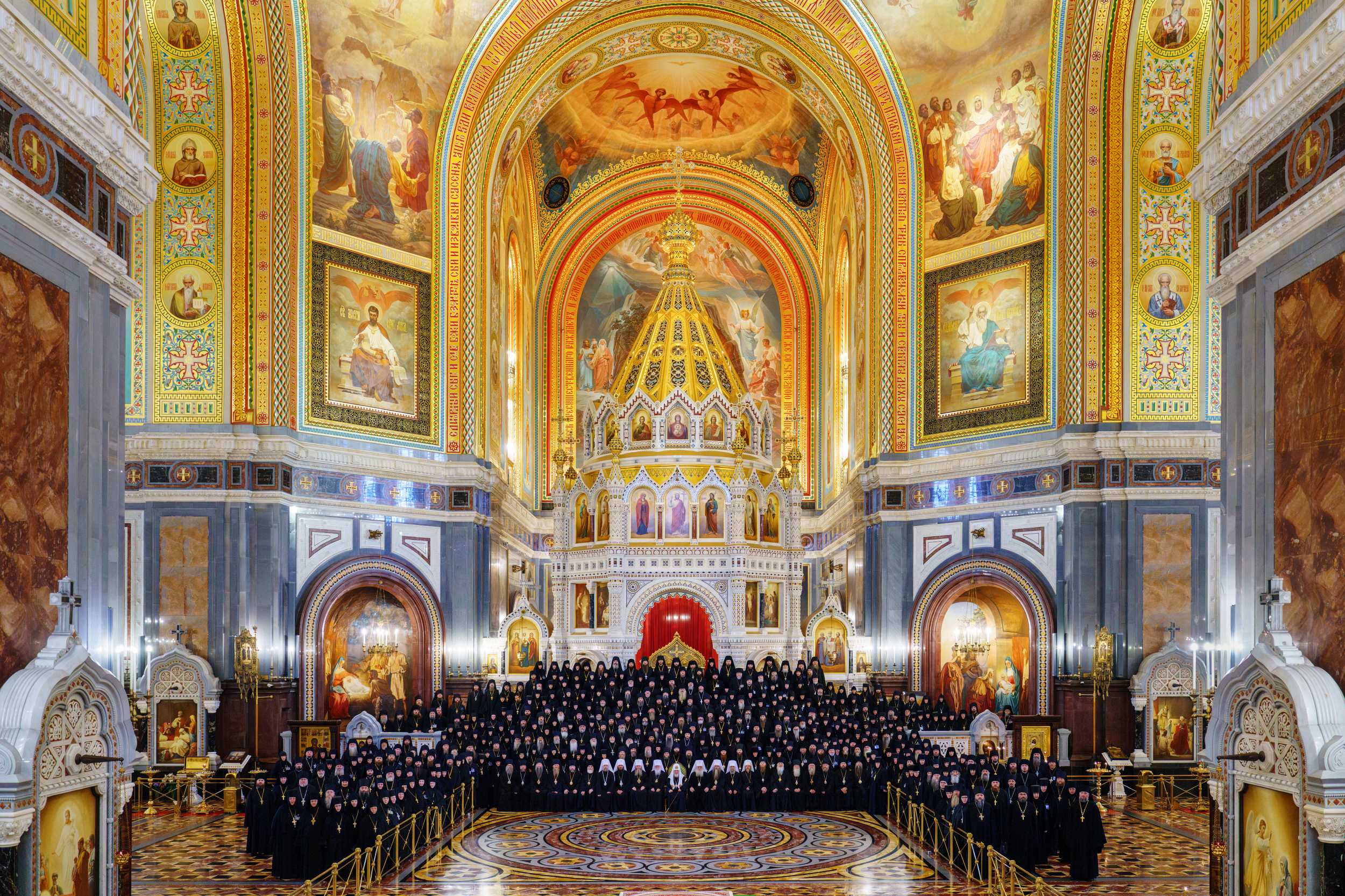 Перед началом заседания в нижней Преображенской церкви Храма Христа Спасителя была совершена Божественная литургия.