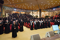 За Литургией молились участники собрания, проследовавшие по окончании богослужения в Зал церковных соборов.