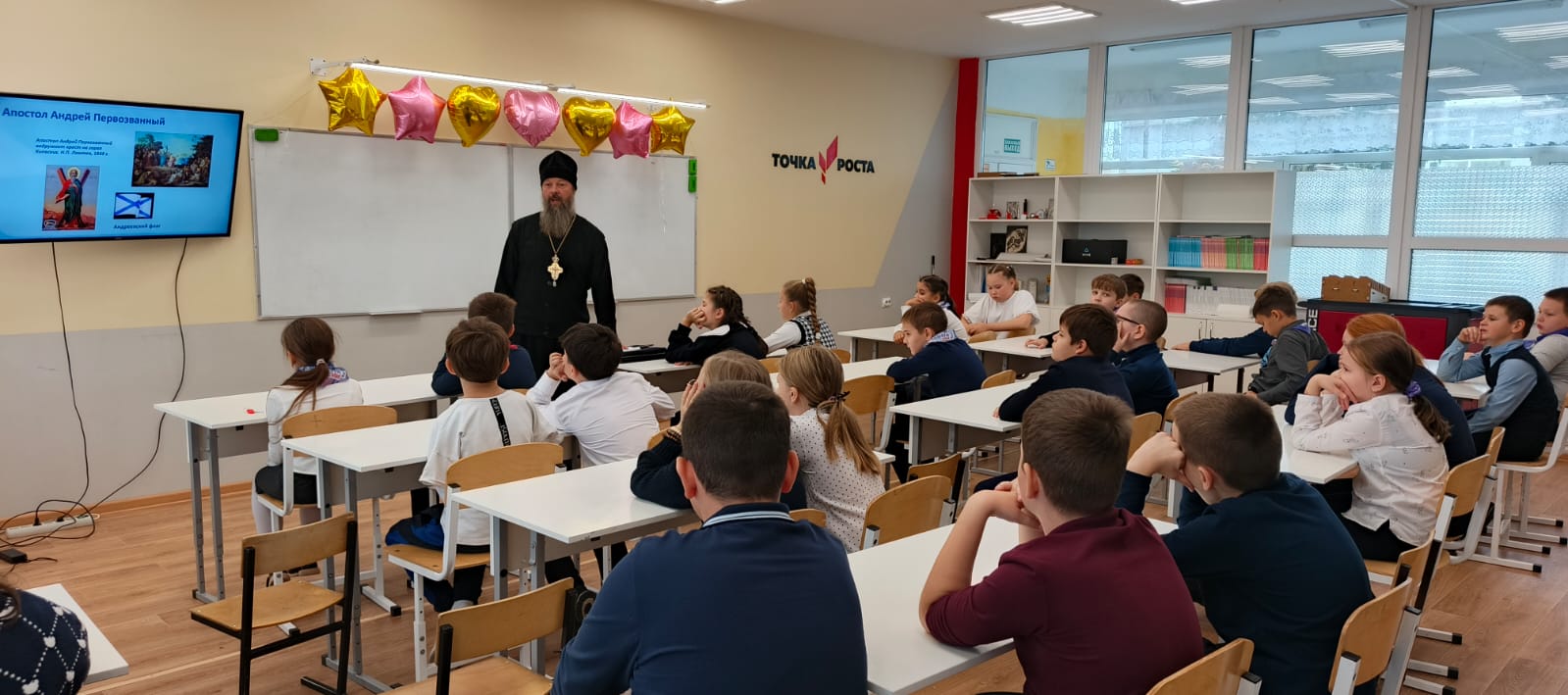 24 сентября настоятель Богородицерождественского храма д. Богородское протоиерей Владимир Пахачев провёл урок по предмету Основы Православной Культуры в 4-х классах МОУ "Пановская СОШ".