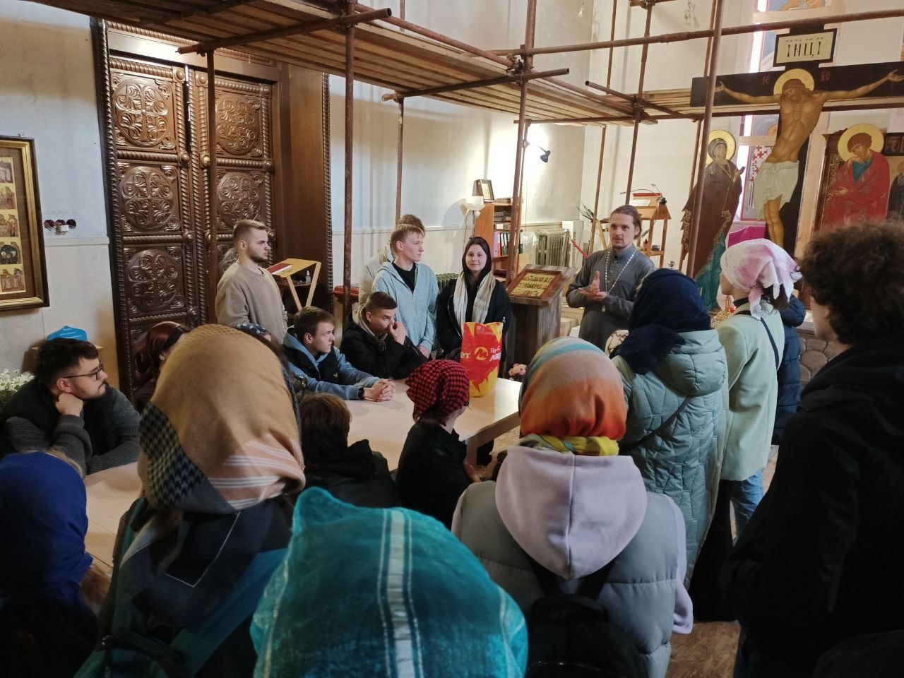 Отец Владимир провёл для гостей экскурсию по храму и духовную беседу.