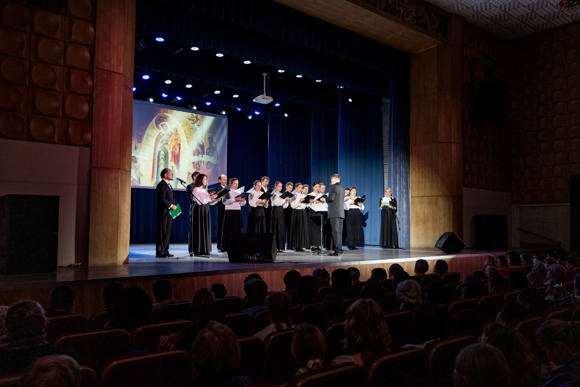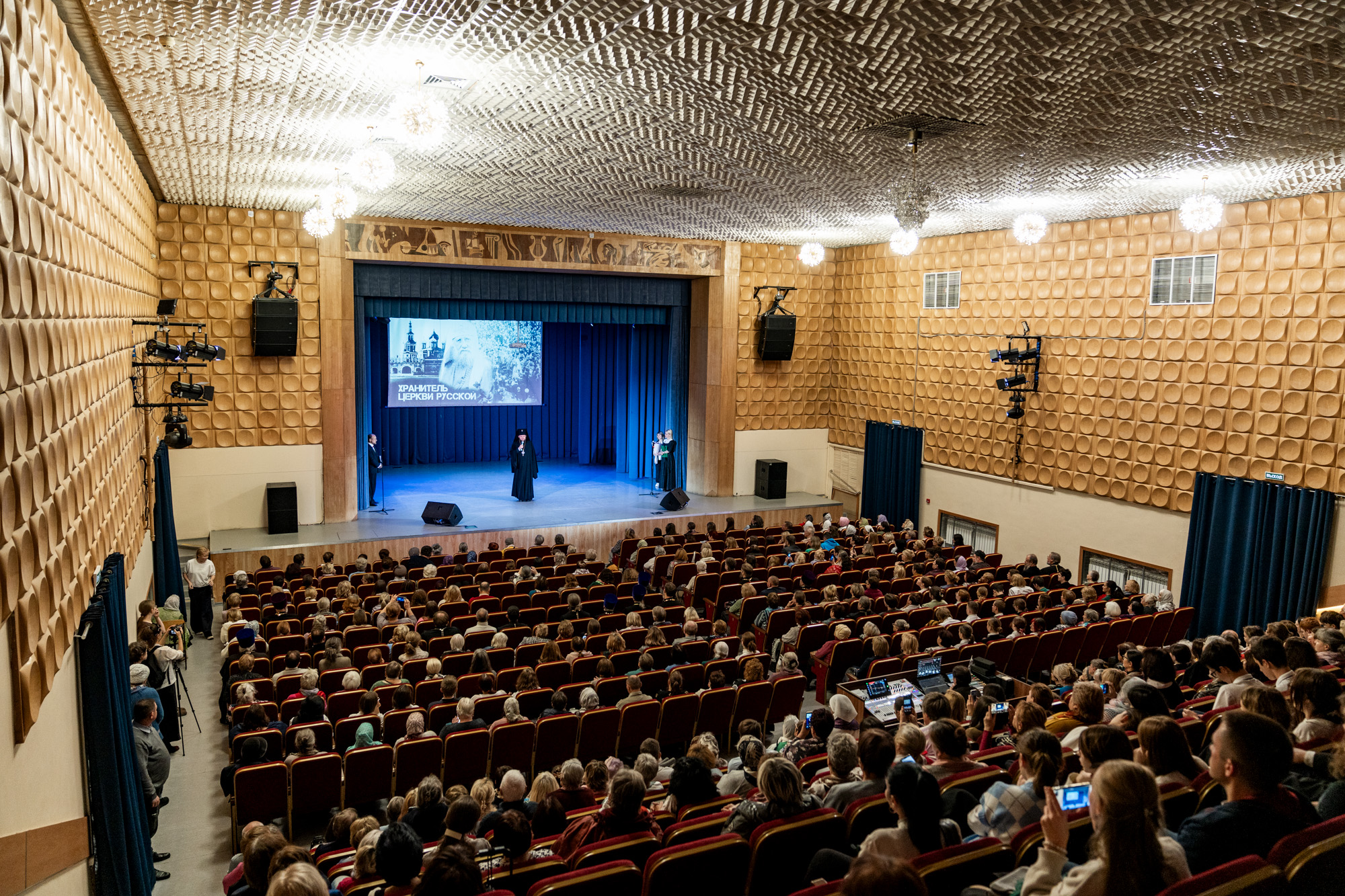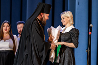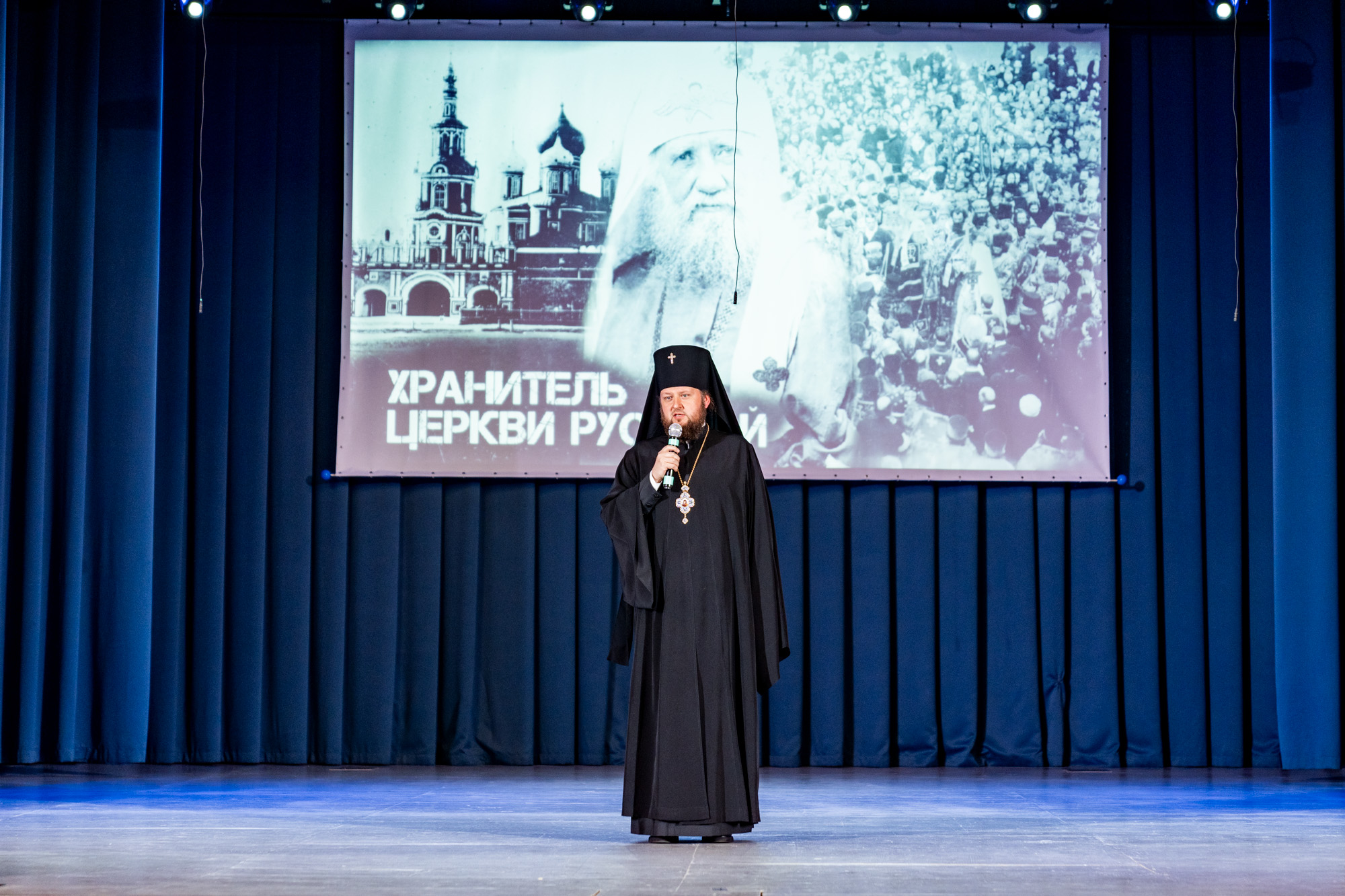 На сцене Дома культуры выступили чтецы Подольского драматического театра Сергей Стегайлов и Татьяна Шендрик и архиерейский хор Подольской епархии под управлением Ярослава Филипсонова. В исполнении хора прозвучали песнопения, связанные с жизнью и служением патриарха Тихона.