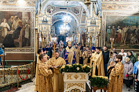 Его Высокопреосвященству сослужили клирики Троицкого кафедрального собора.