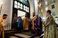 2 октября вечером архиепископ Подольский и Люберецкий Аксий совершил молебное пение перед ковчегом с мощами святителя Тихона, Патриарха Всероссийского, в Троицком кафедральном соборе Подольска.