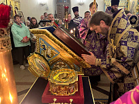 После Литургии был отслужен молебен с акафистом перед мощами святителя Тихона, Патриарха Московского. Затем состоялся крестный ход вокруг кафедрального собора.