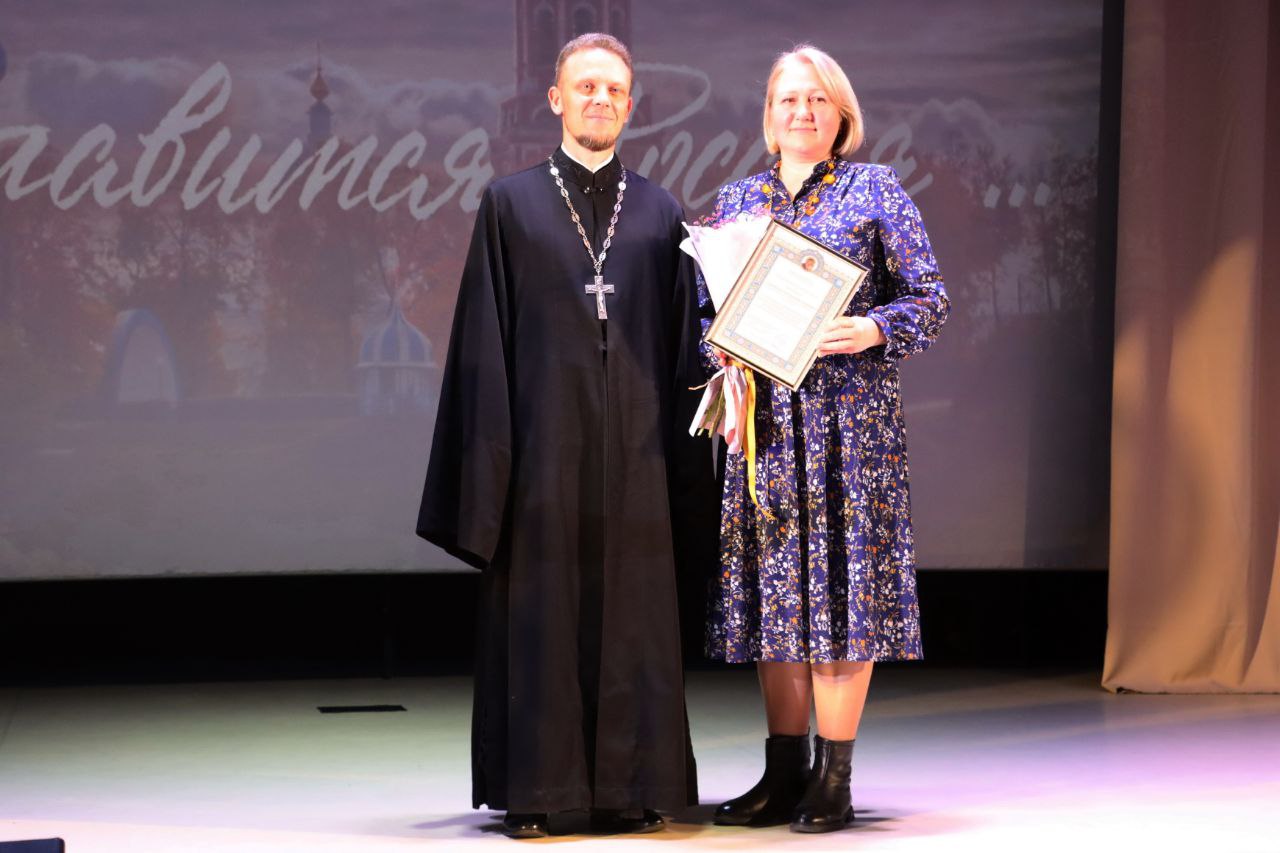 Отец Сергий обратился к присутствующим с поздравительным словом и вручил грамоты благочиния педагогам, потрудившимся на ниве духовно-нравственного просвещения.