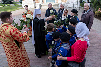 Также Архипастырь обратился к учителям с поздравительным словом накануне Дня учителя и вручил памятные подарки.