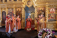 Его Высокопреосвященству сослужили: благочинный 1-го Бронницкого округа и настоятель собора иерей Сергий Себелев, благочинный 2-го Бронницкого округа иерей Алексий Розов, а также клирики 1-го и 2-го Бронницких благочиний.