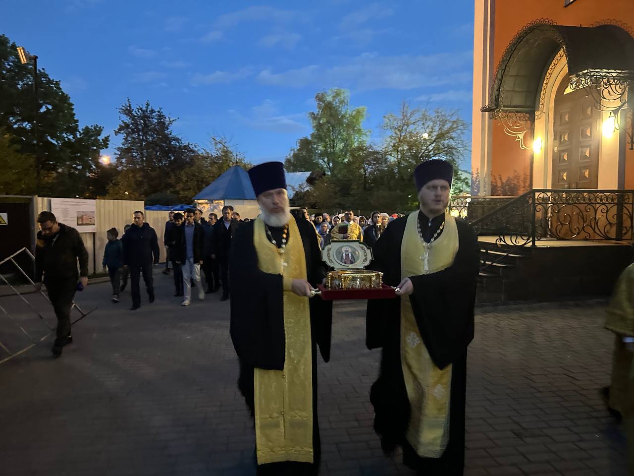 По окончании богослужения было совершено молебное пение святителю Тихону, патриарху Московскому, а затем ковчег с мощами святителя Тихона был перенесён в Сергиево-Посадскую епархию.
