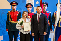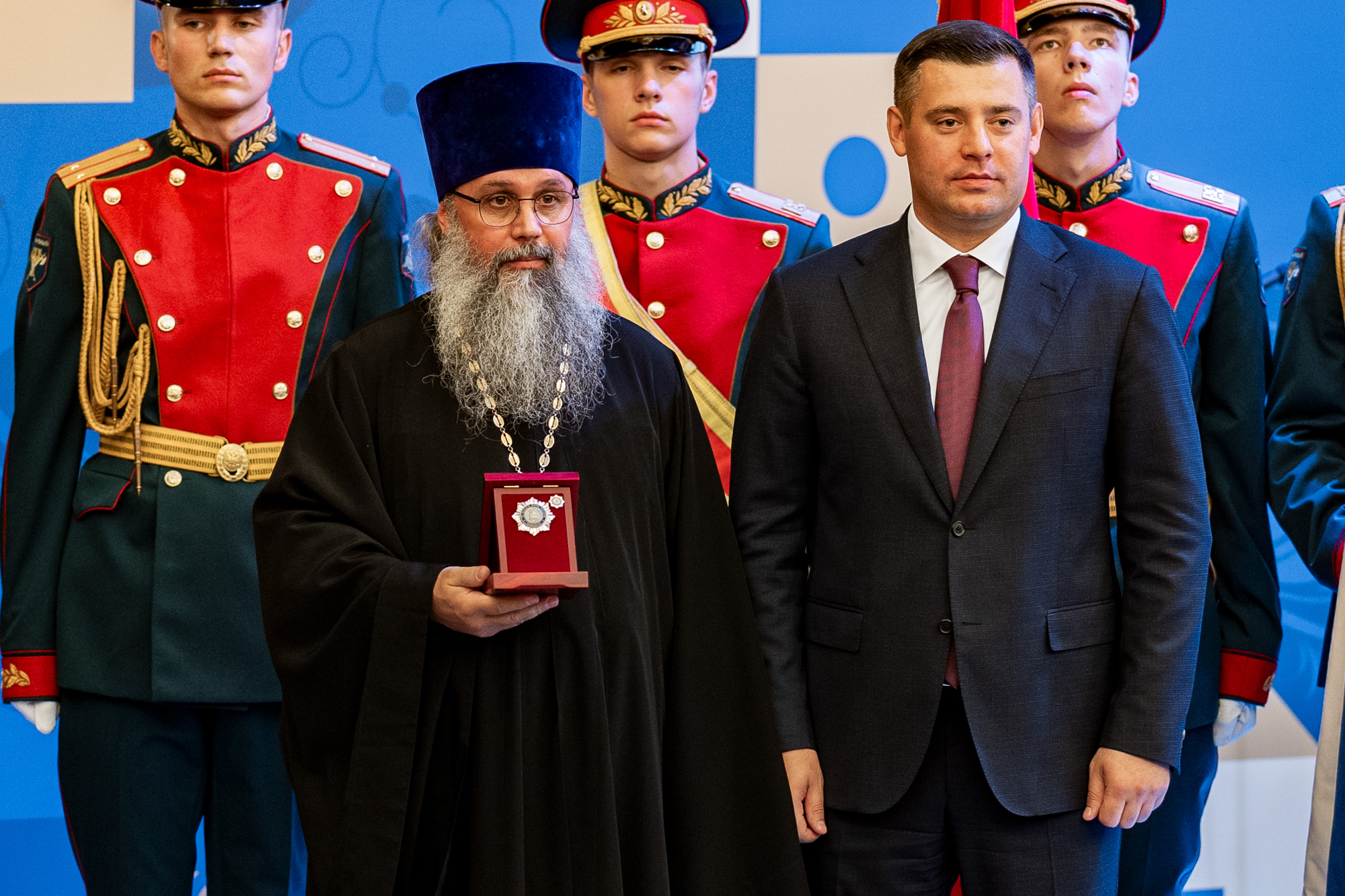 Выдающимся жителям г.о. Подольск и заслуженным сотрудникам предприятий города были вручены награды. Почётным знаком «Честь и Слава» был награждён благочинный Подольского церковного округа иерей Серафим Покатилов. После вручения наград архиепископ Аксий обратился к присутствующим со словами поздравления.