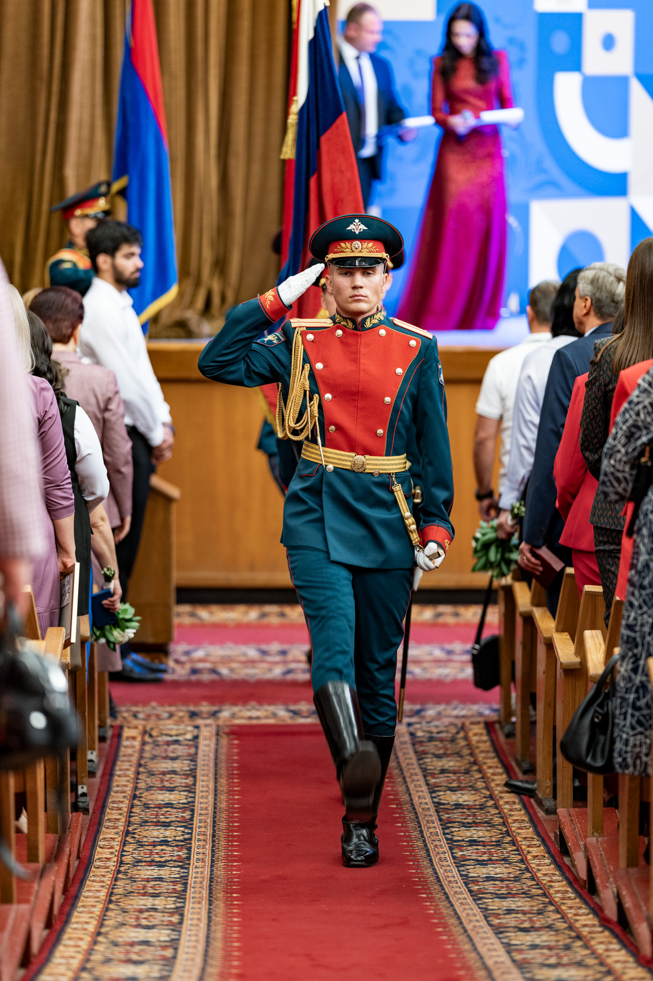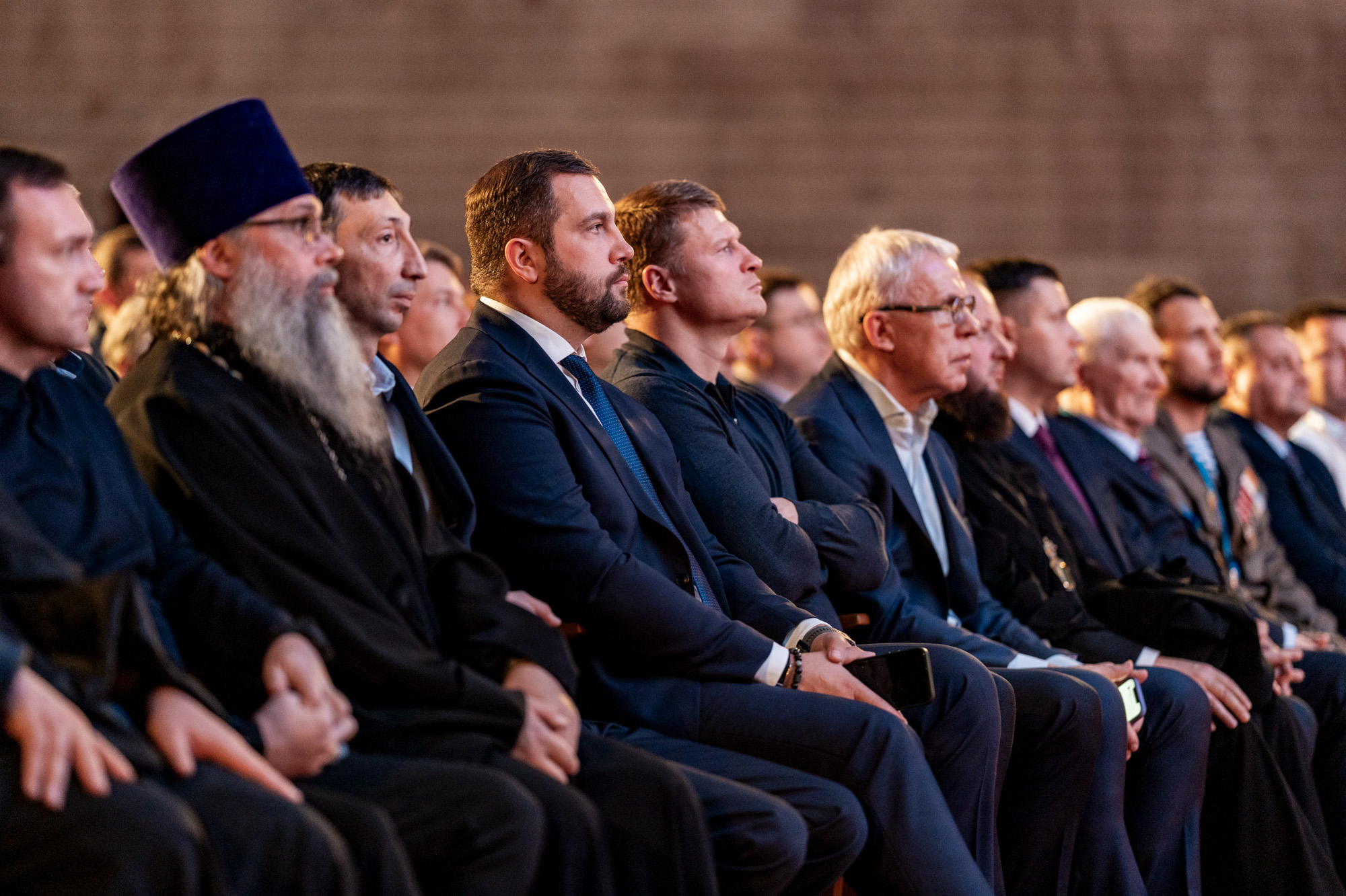 Затем состоялся праздничный концерт, на котором выступили образцово-показательный оркестр войск национальной гвардии Российской Федерации, лауреаты всероссийских и международных конкурсов, народные и заслуженные артисты Российской Федерации..