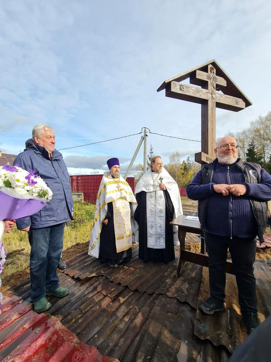 Перед воздвигнутым крестом был совершен молебен. С приветственным словом к верующим обратился благочинный церквей Клинского округа протоиерей Евгений Мальков, подчеркнув значимость данного события. По окончании богослужения все желающие могли написать свои имена на кирпичах, которые будут использованы для возведения стен и несущих конструкций.