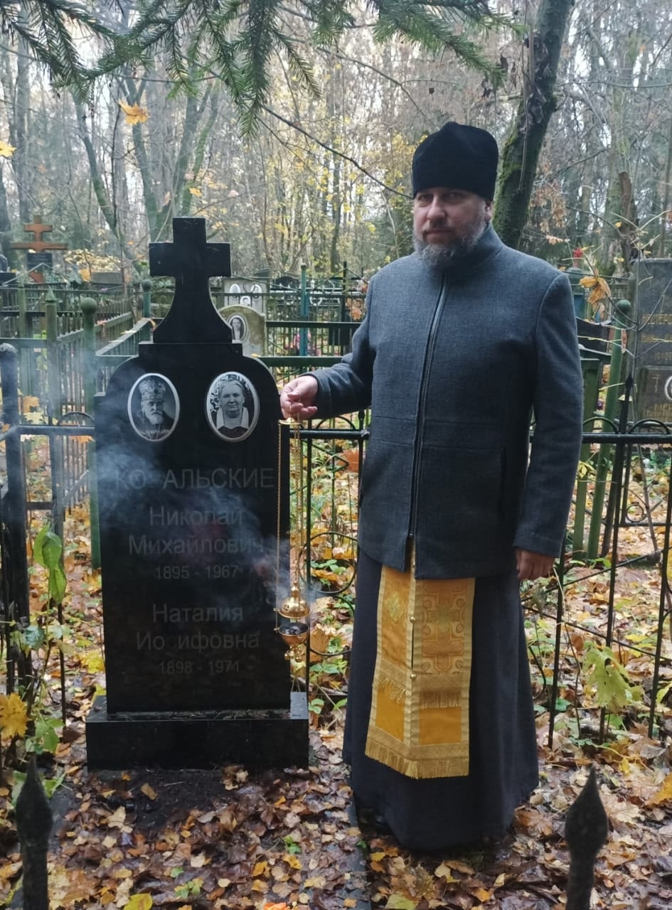 22 октября исполнилось 58 лет со дня блаженной кончины бывшего настоятеля Богоявленского храма г. Коломны протоиерея Николая Ковальского (1895-1967). В этот день настоятель Богоявленского храма иерей Виктор Волков совершил заупокойную литию на месте захоронения протоиерея Николая и его супруги.