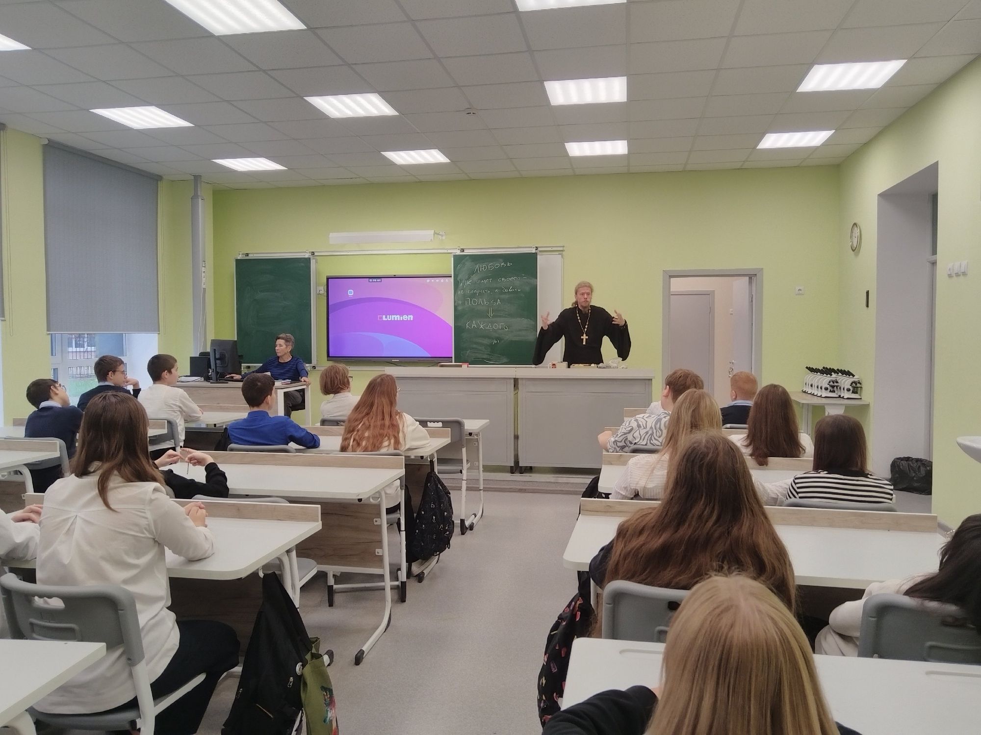 В 21-й школе отец Димитрий встретился с учащимися 6В класса и провел с ними интерактивную встречу на тему смысла жизни, счастья и любви.